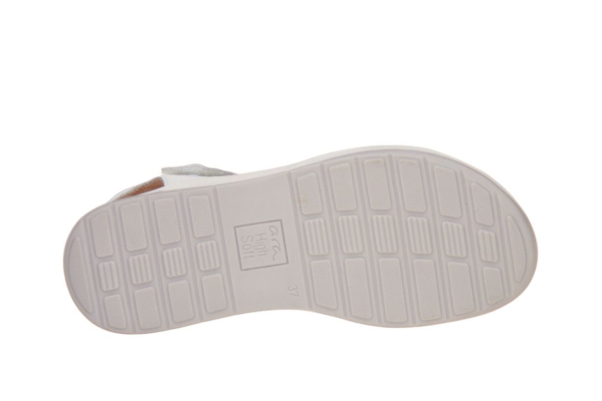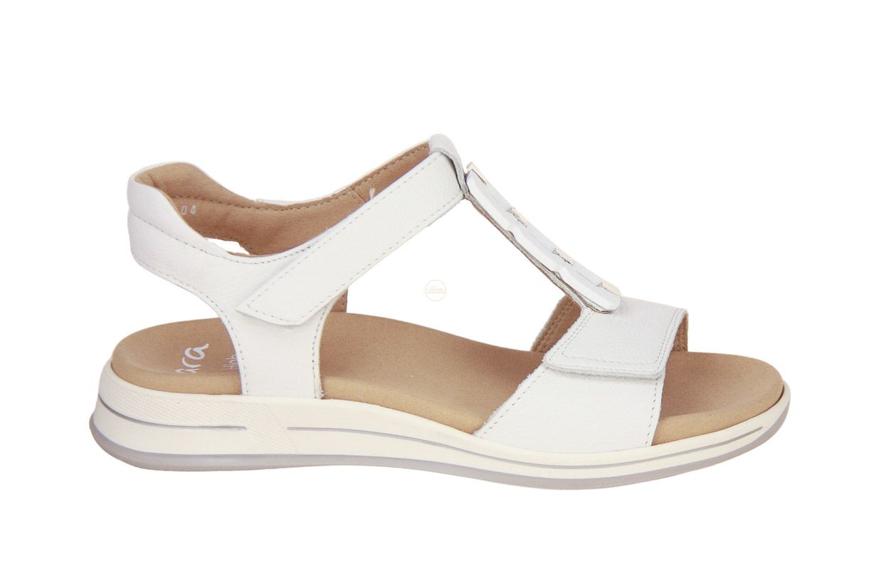 Deze wit lederen damessandaal is van het merk Ara.
