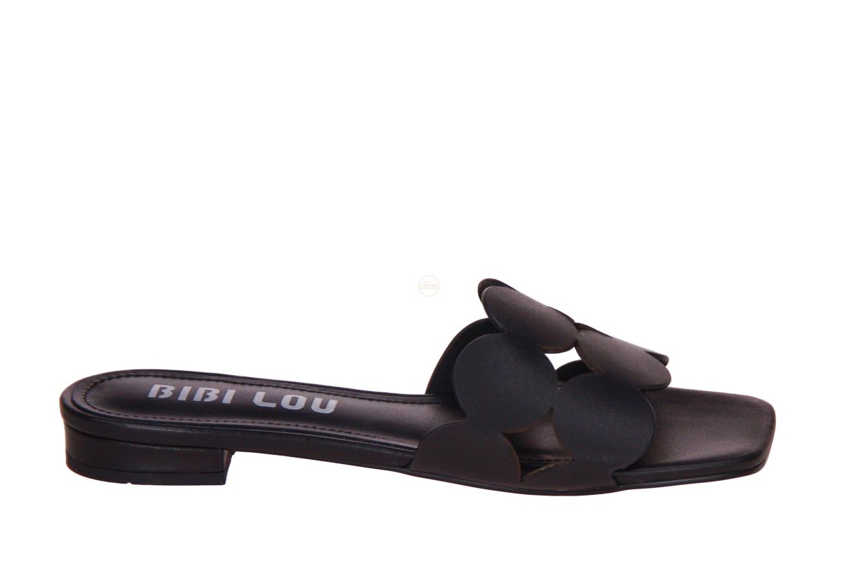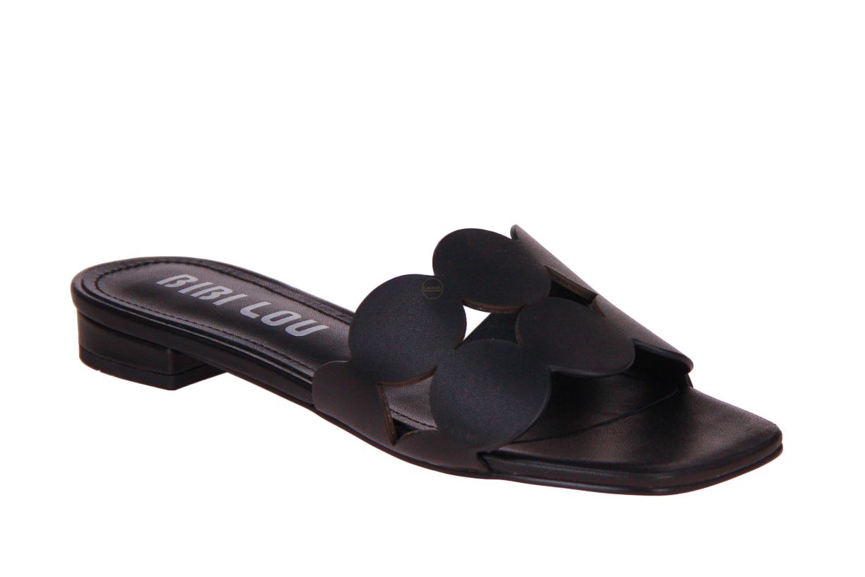 Deze zwart lederen damesslipper is van het merk Bibi Lou.