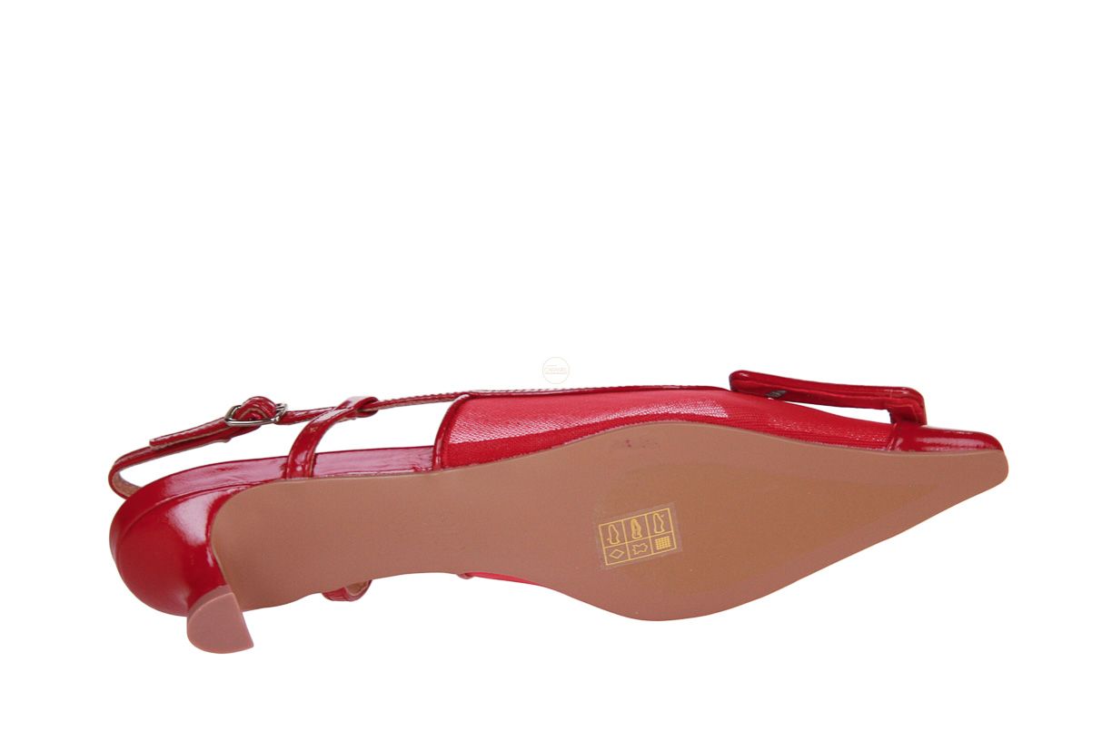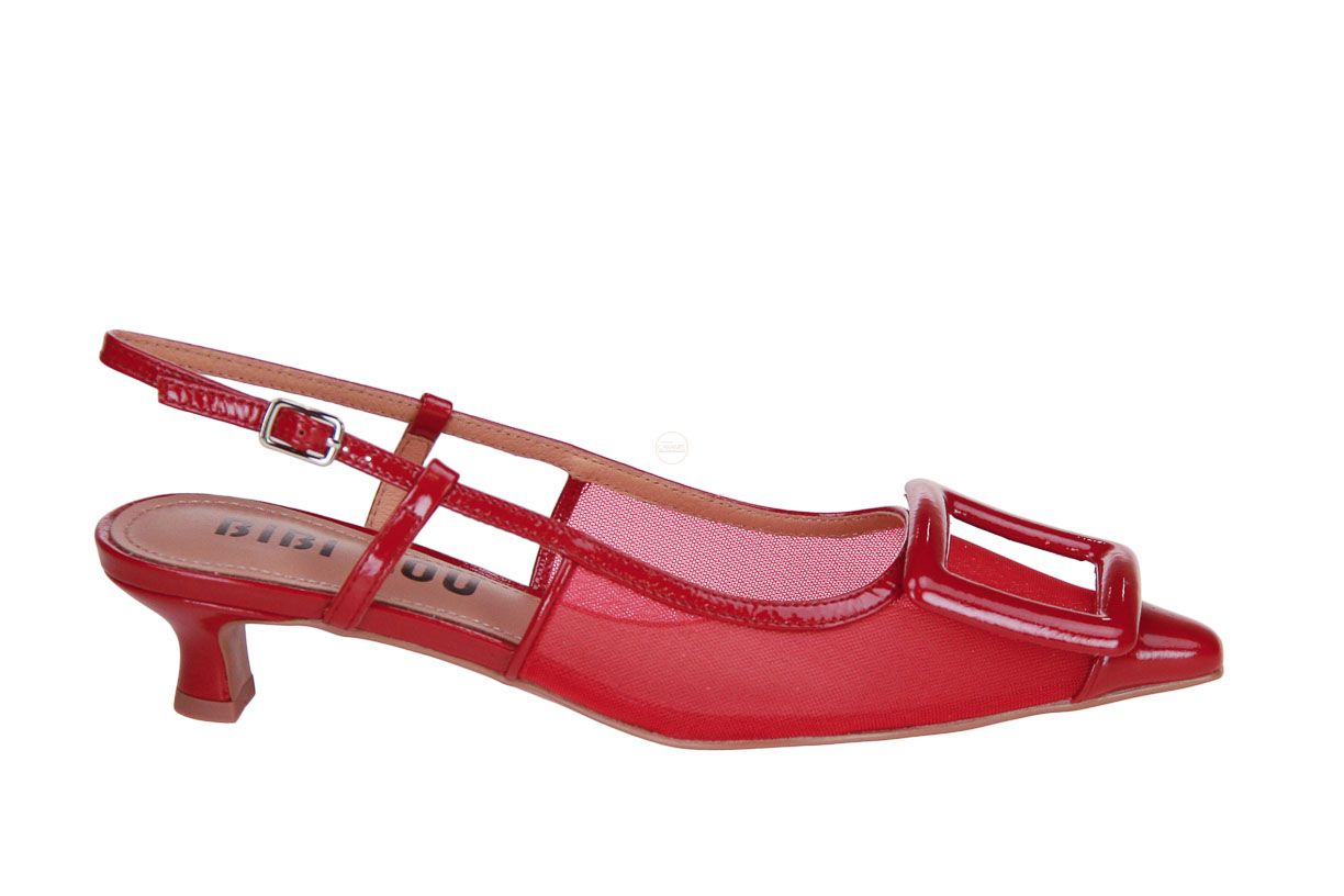 Deze rood lederen damesschoen is van het merk Bibi Lou.
