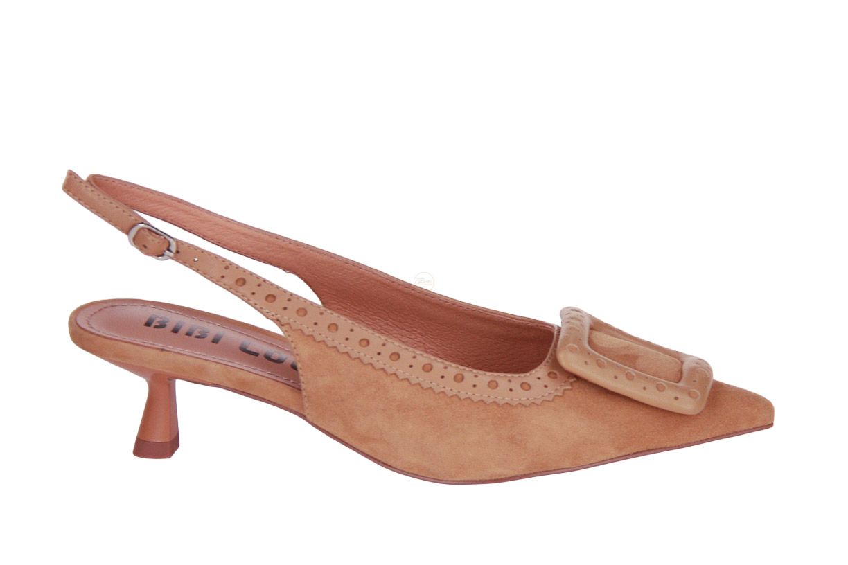Deze camel suède damesschoen is van het merk Bibi Lou.