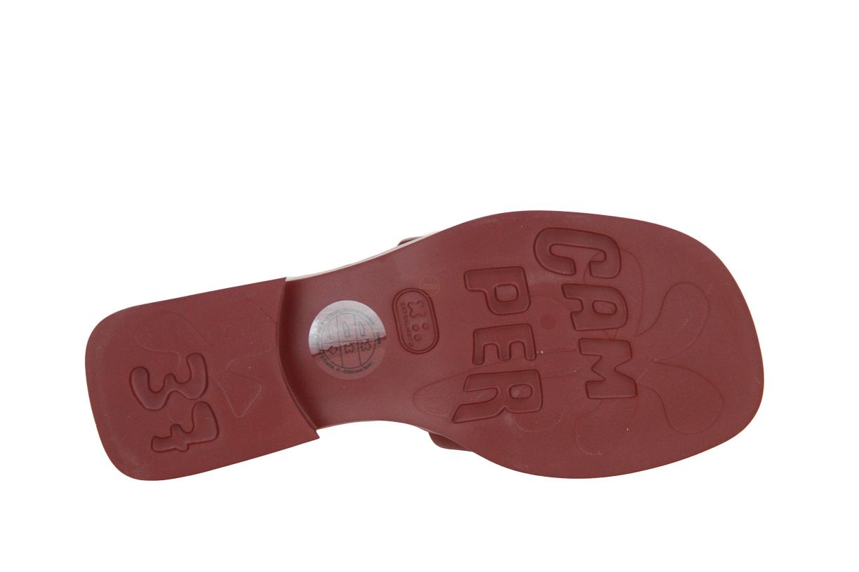 Deze bordo lederen damesslipper is van het merk Camper.