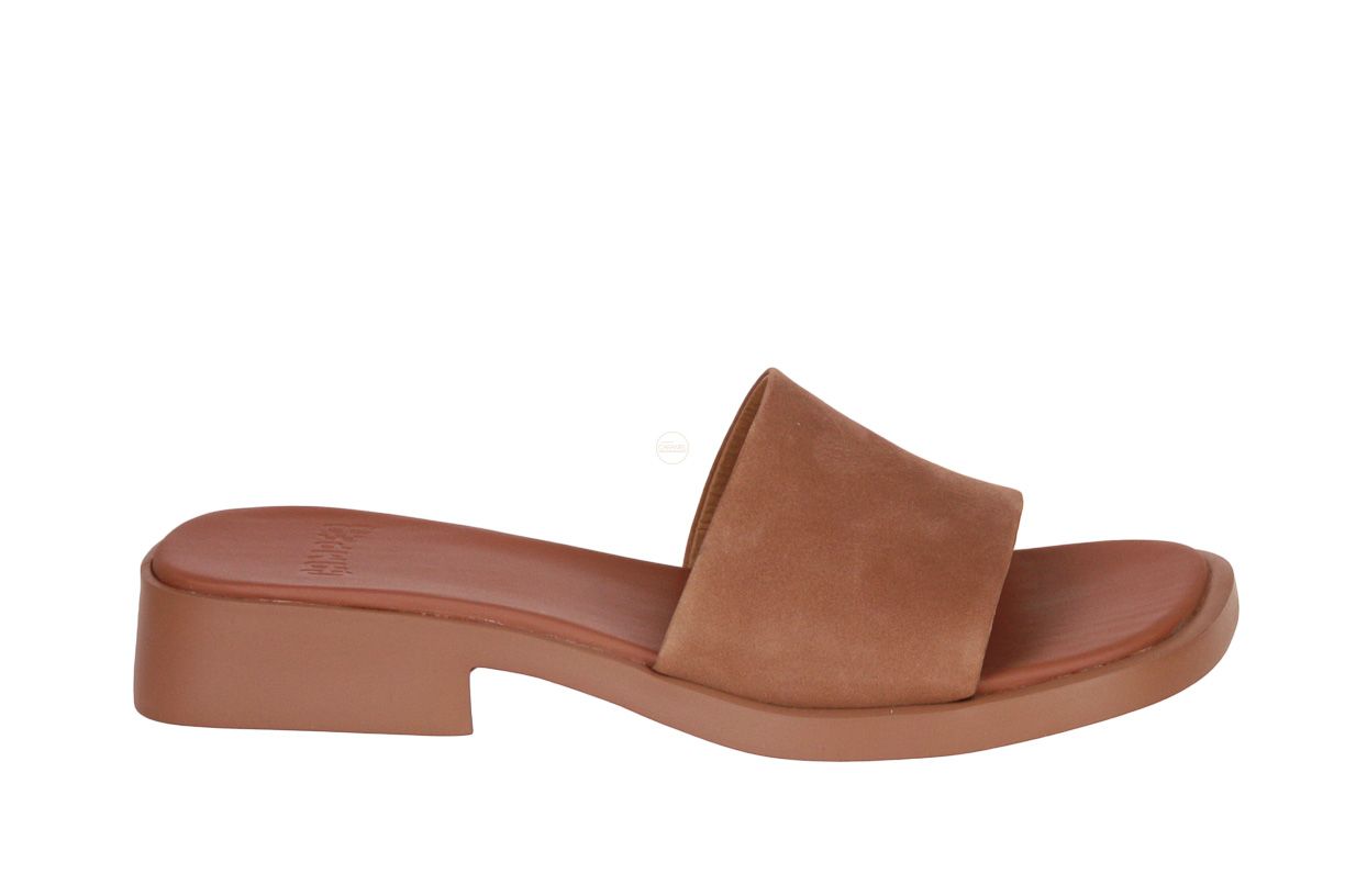 Deze bruin nubuck damesslipper is van het merk Camper.