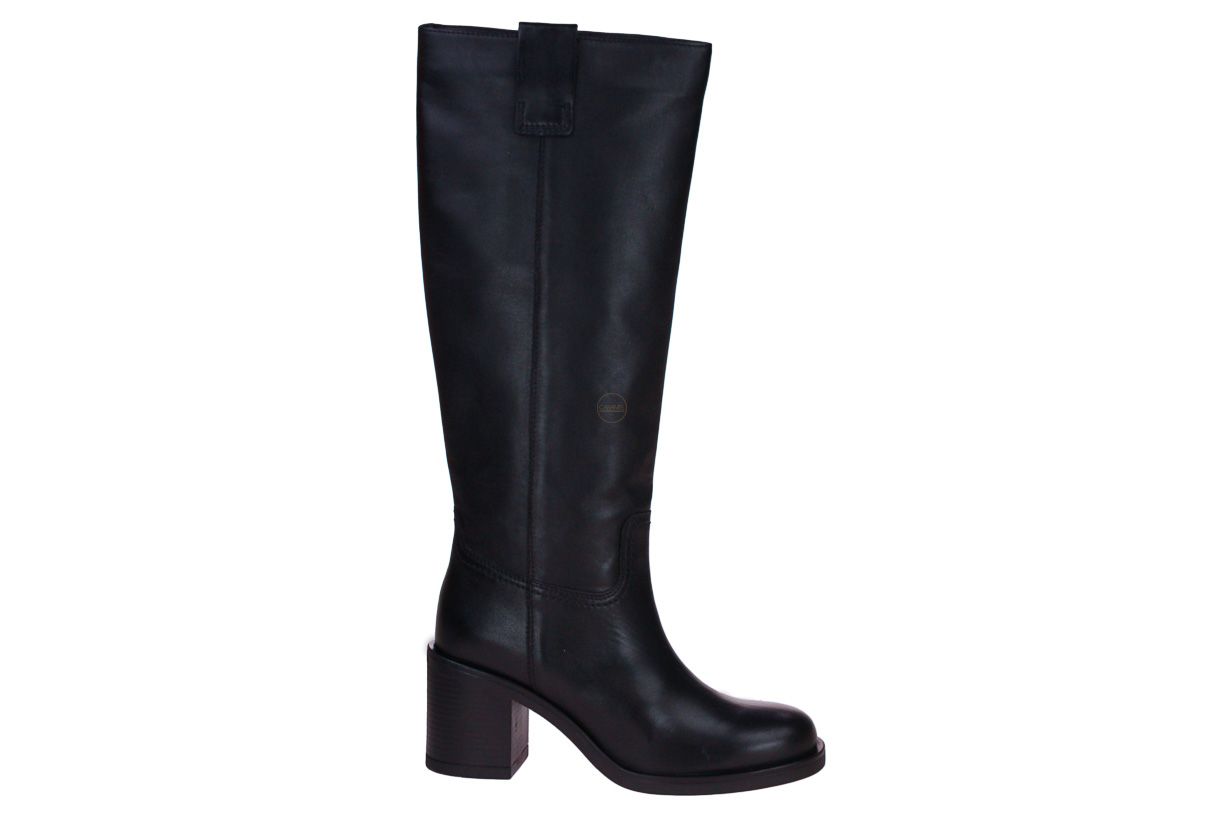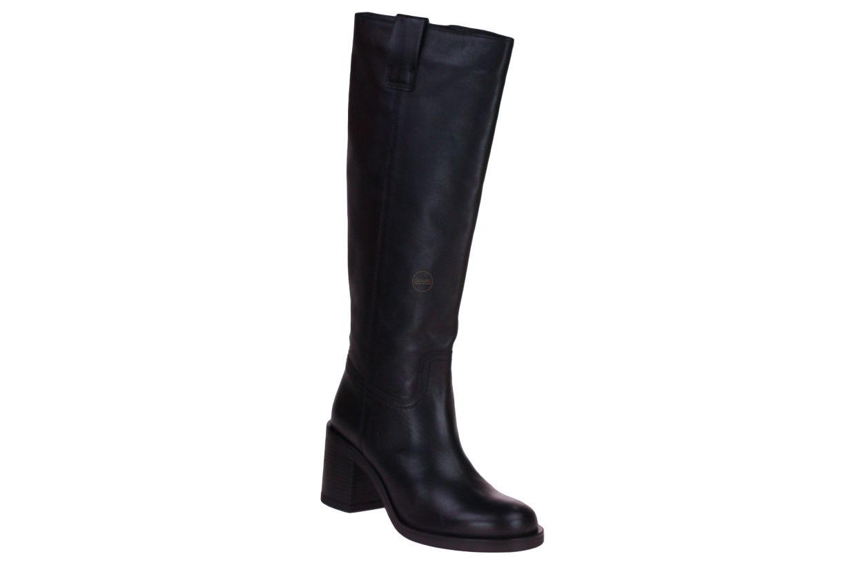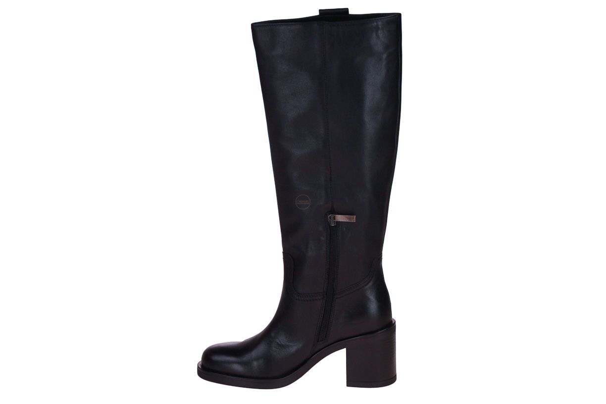 Deze zwart lange lederen dameslaars is van het merk Carmens.