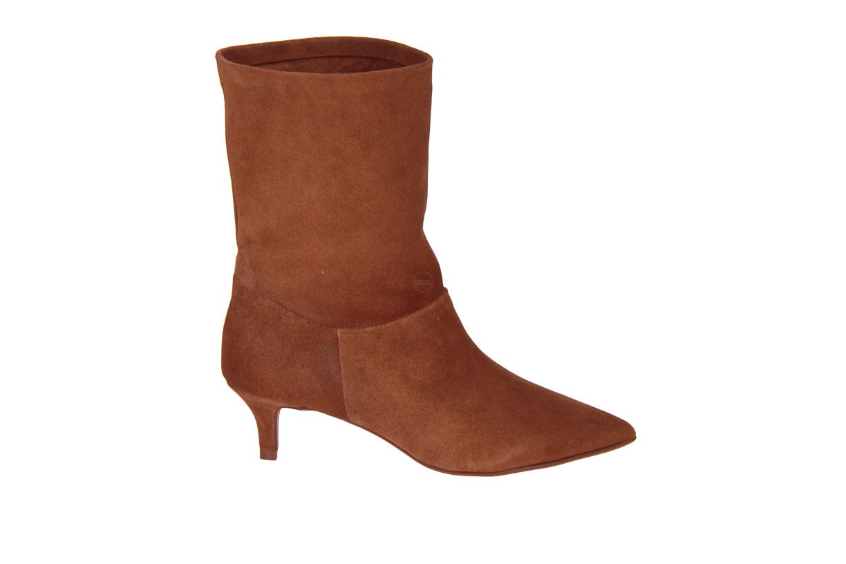 Deze cognac nubuck korte dameslaars is van het merk Carmens.