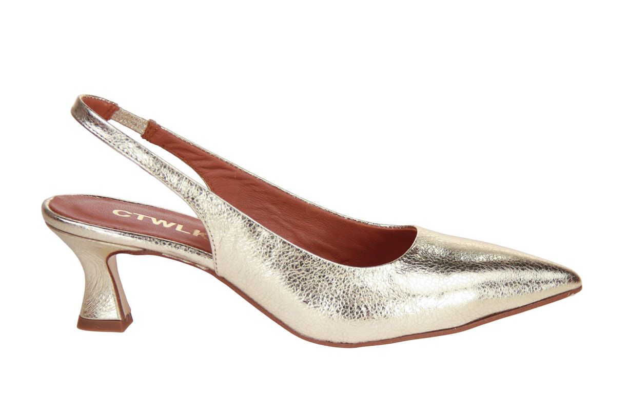 Deze goud lederen damesschoen is van het merk CTWLK.