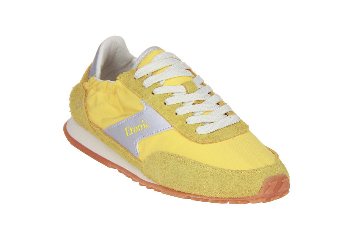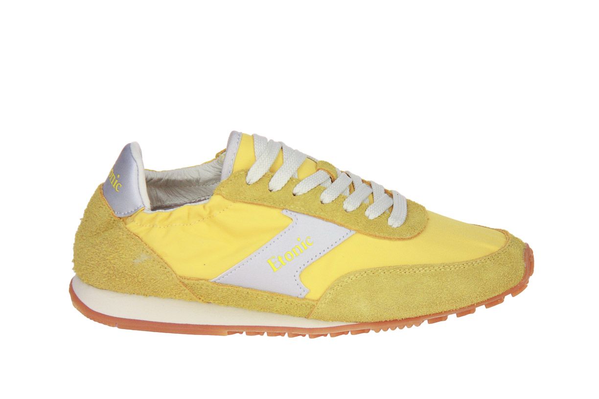 Deze geel suède damesschoen is van het merk Etonic. De binnenzool is uitneembaar, ideaal voor steunzolen.