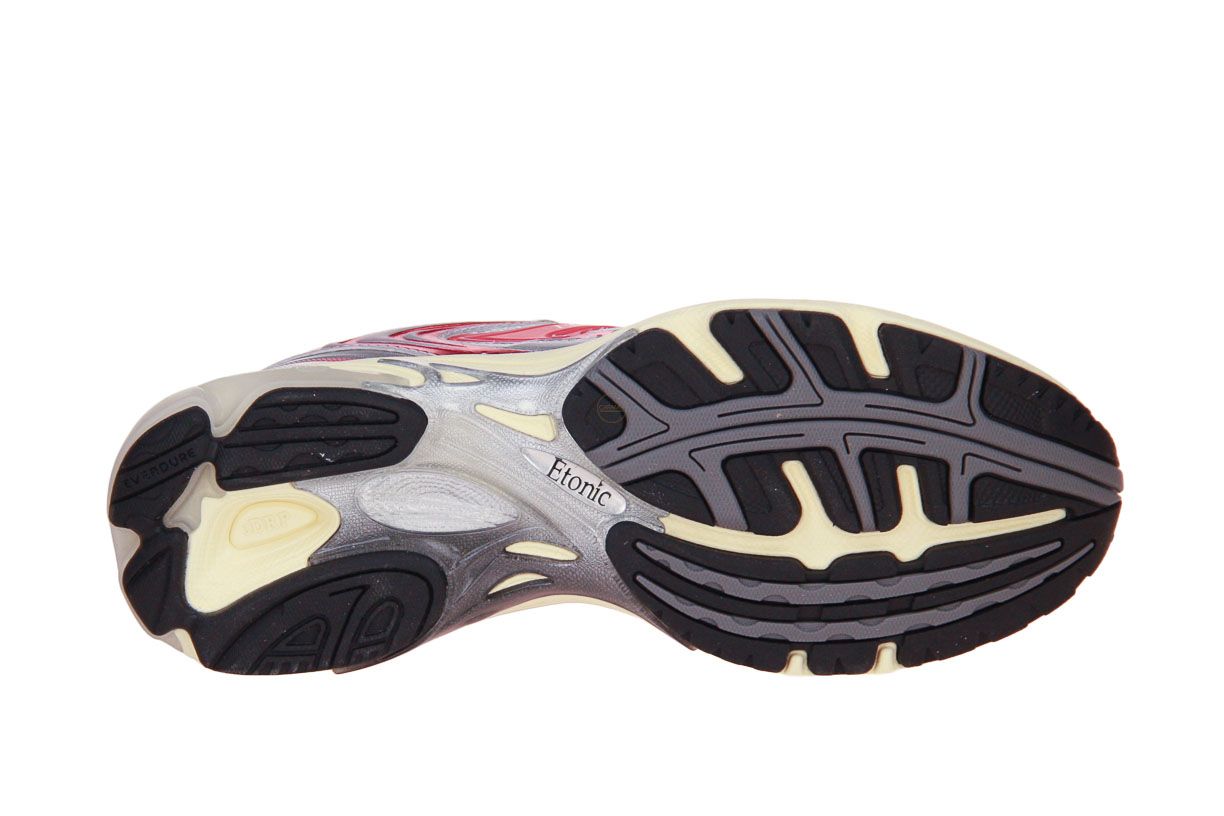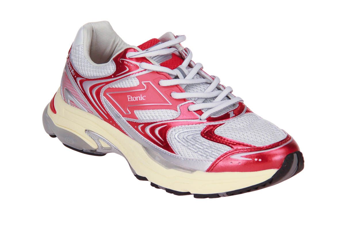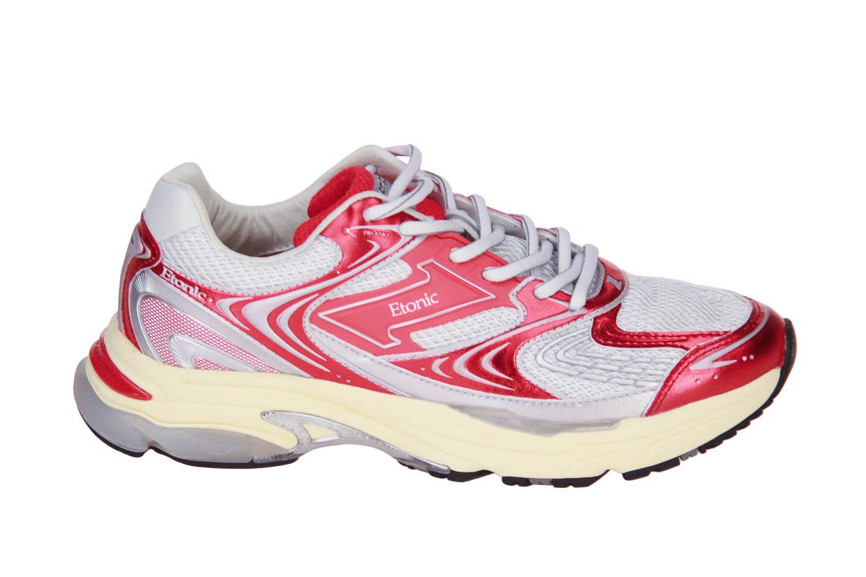 Deze wit-rode lederen damesschoen is van het merk Etonic. De binnenzool is uitneembaar, ideaal voor steunzolen.