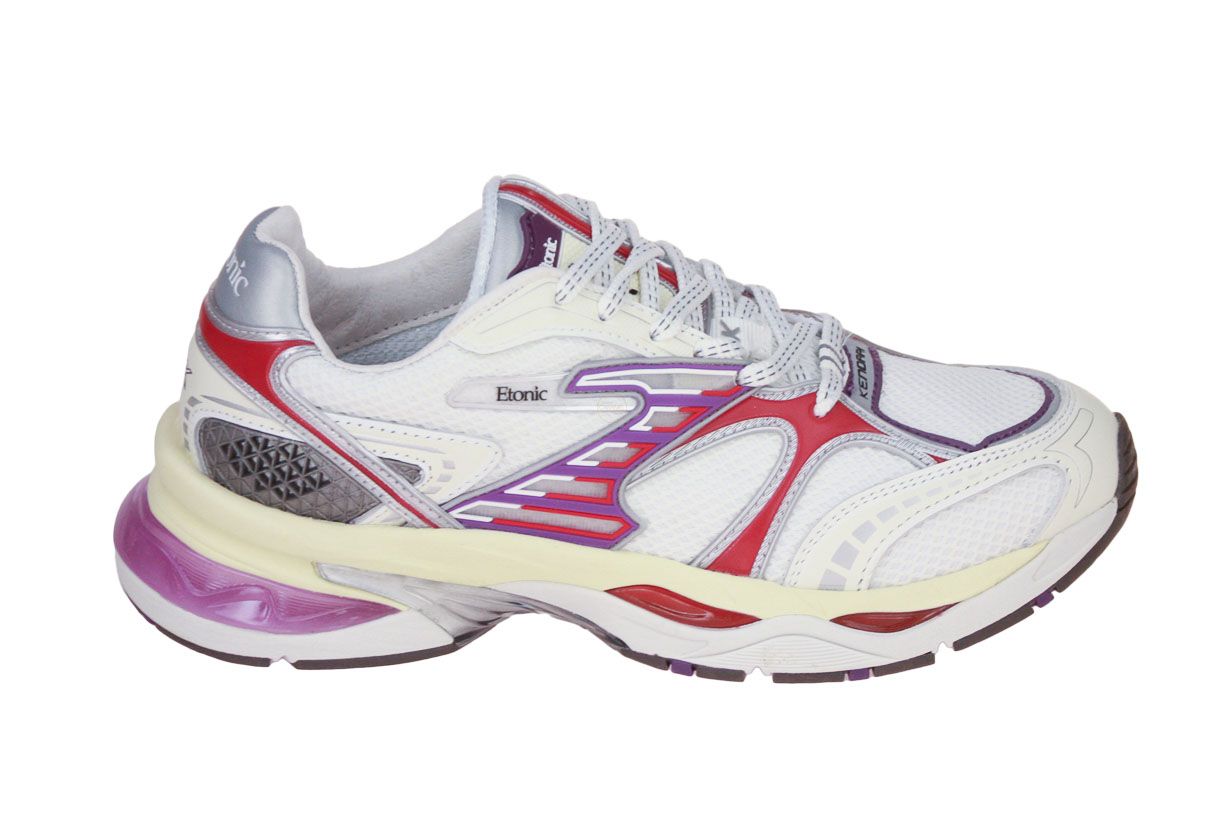 Deze wit lederen damesschoen is van het merk Etonic. De binnenzool is uitneembaar, ideaal voor steunzolen.