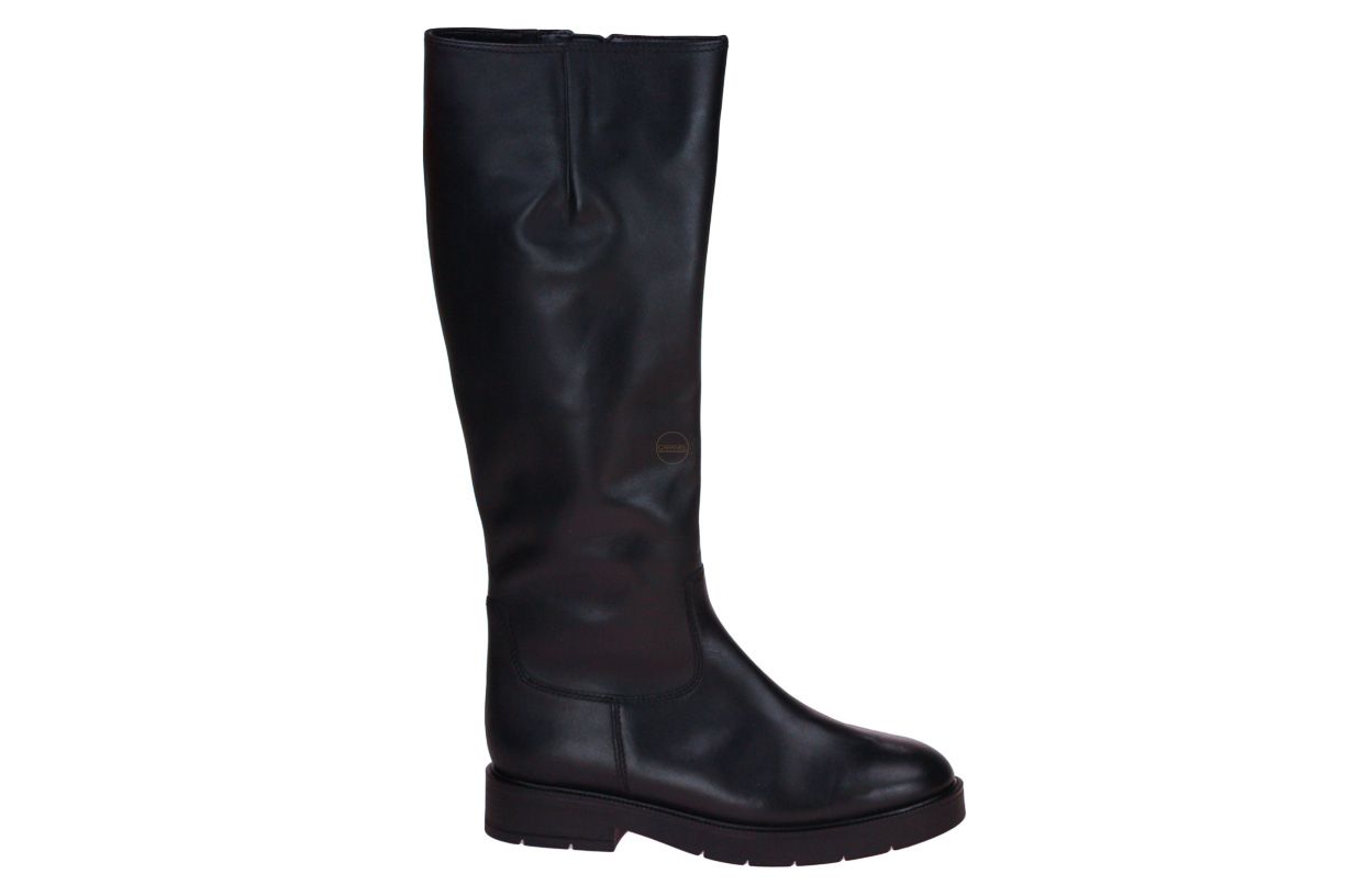 Deze zwart lederen lange dameslaars is van het merk Gabor.