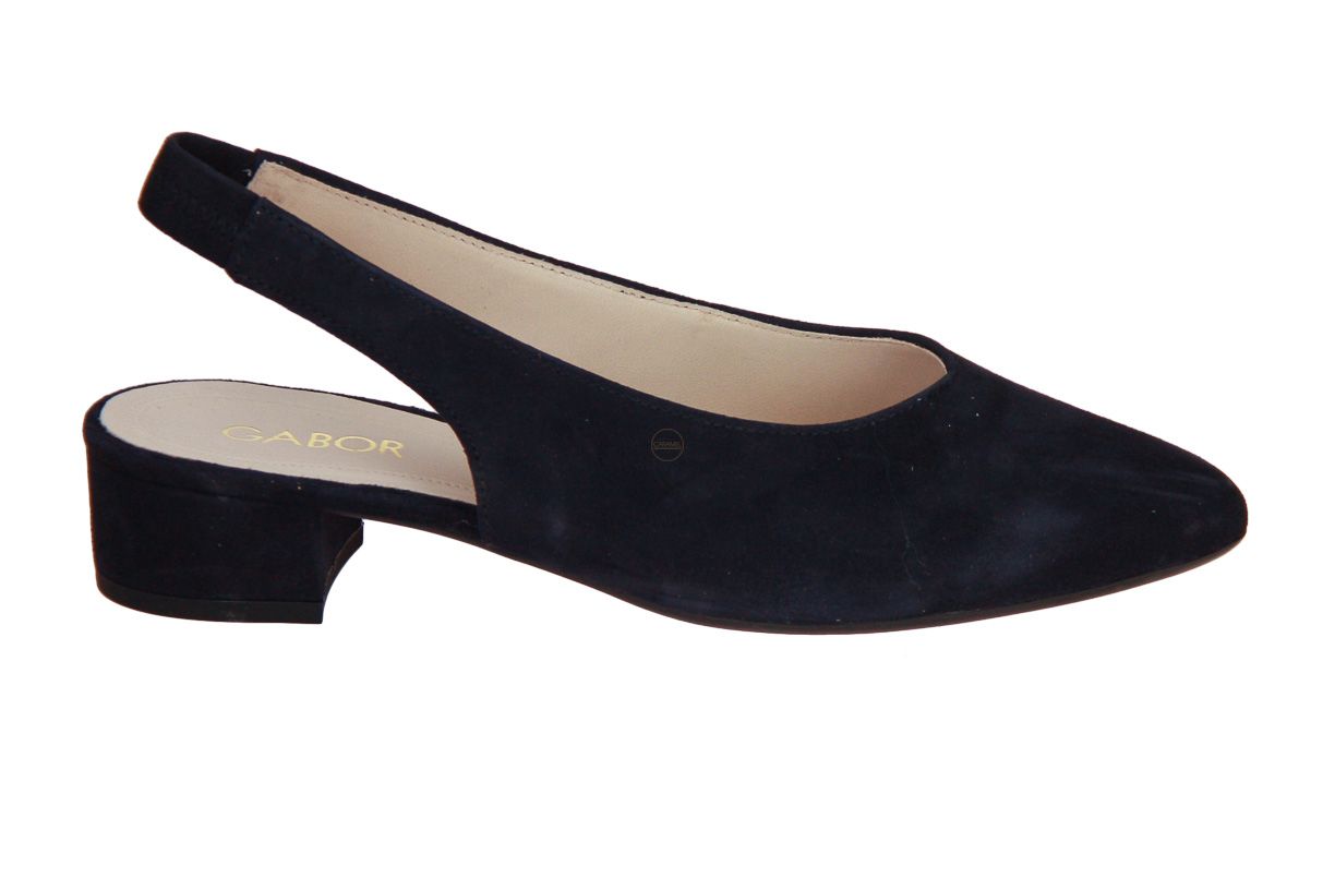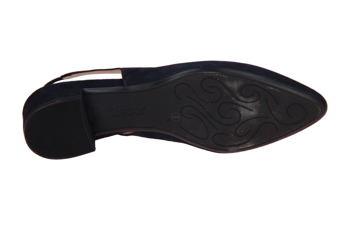 Deze blauw suède damesschoen is van het merk Gabor.