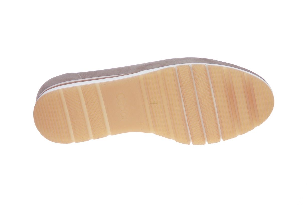 Beige nubuck damesschoen van het merk Gabor. De binnenzool is uitneembaar, ideaal voor steunzolen.