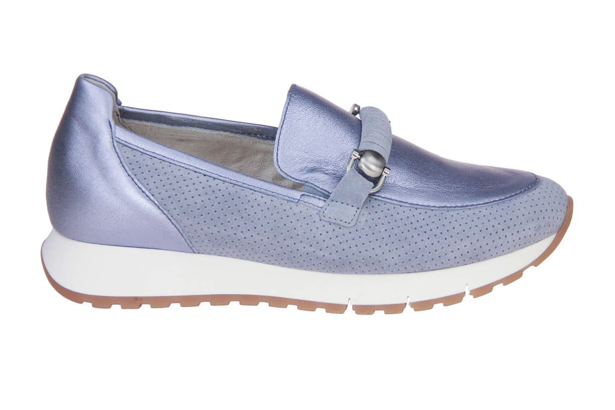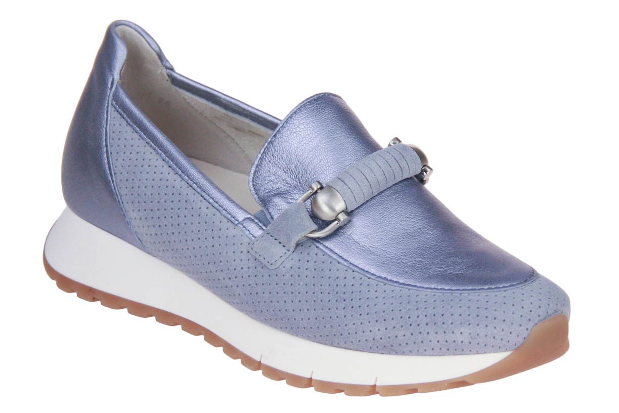 Deze metallic lederen damesschoen met suède accenten is van het merk Gabor. De binnenzool is uitneembaar, ideaal voor steunzolen.
