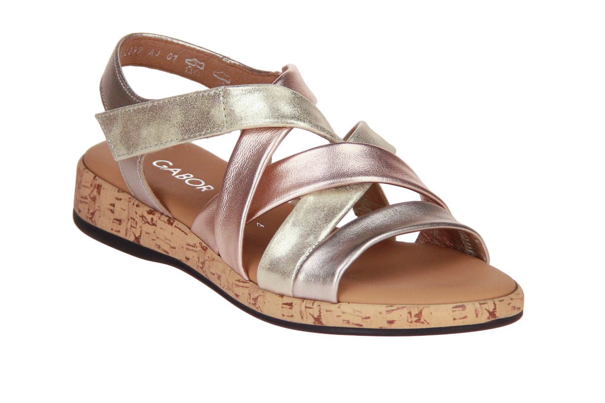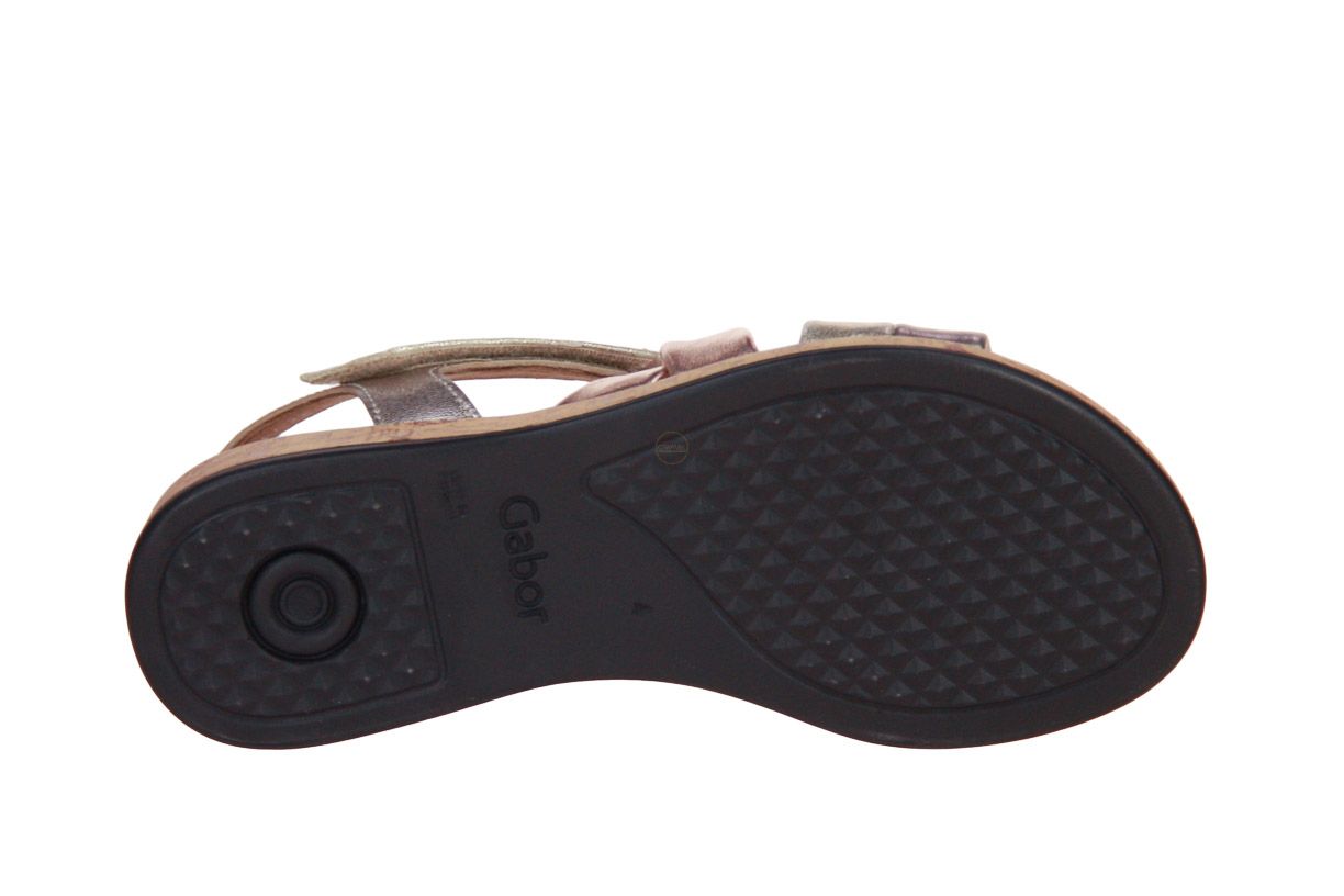 Deze metallic lederen damessandaal is van het merk Gabor.