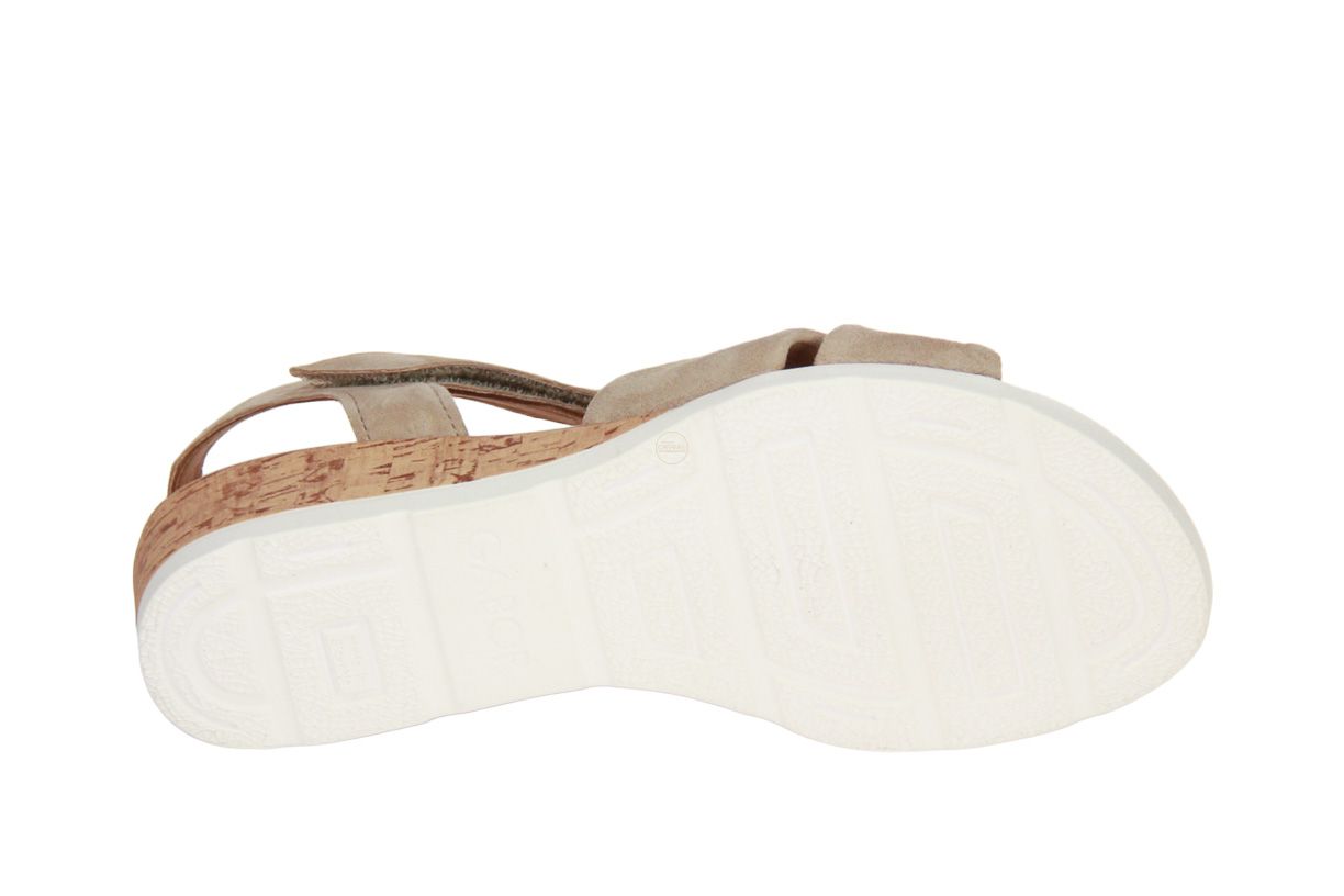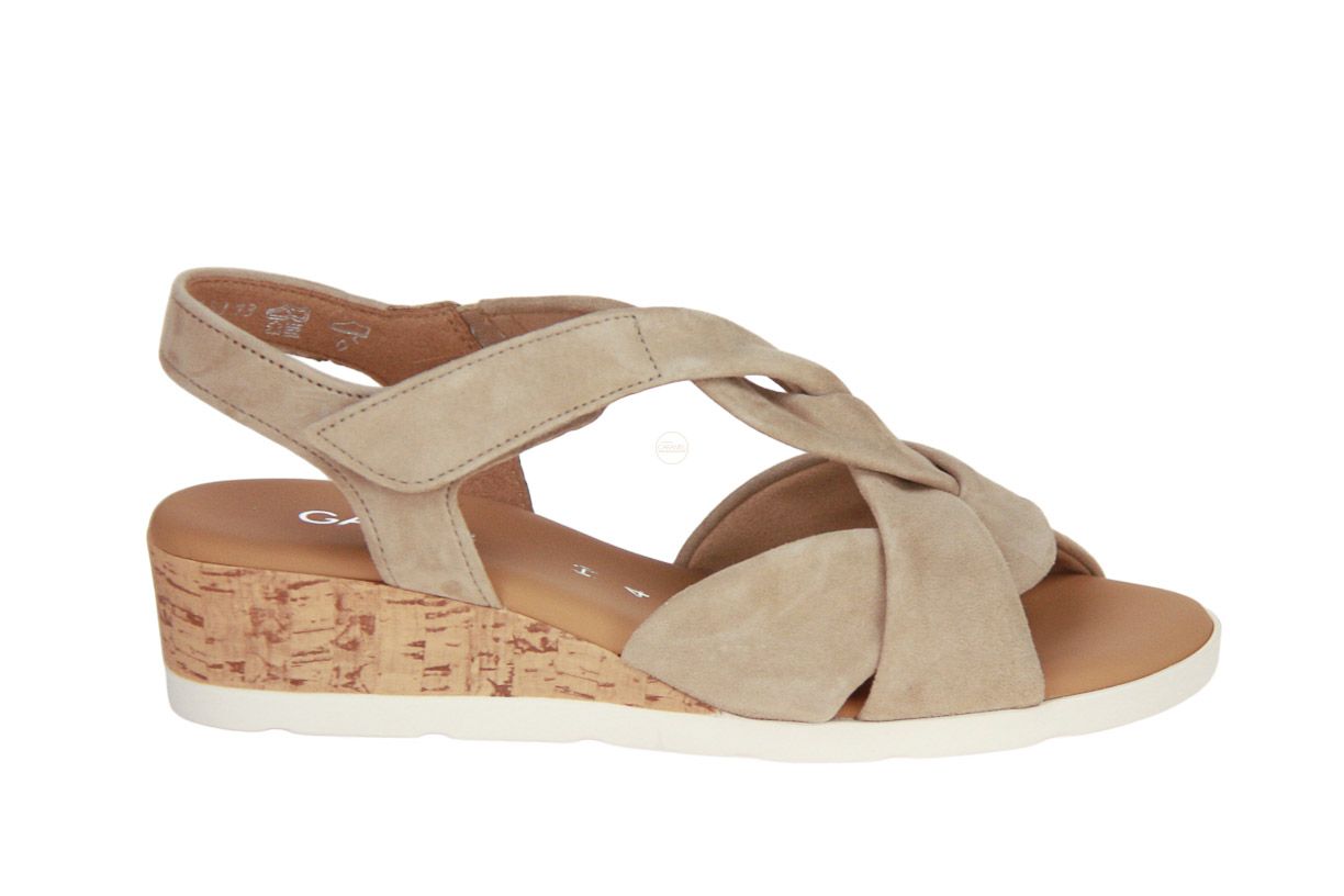 Deze beige nubuck damessandaal is van het merk Gabor.