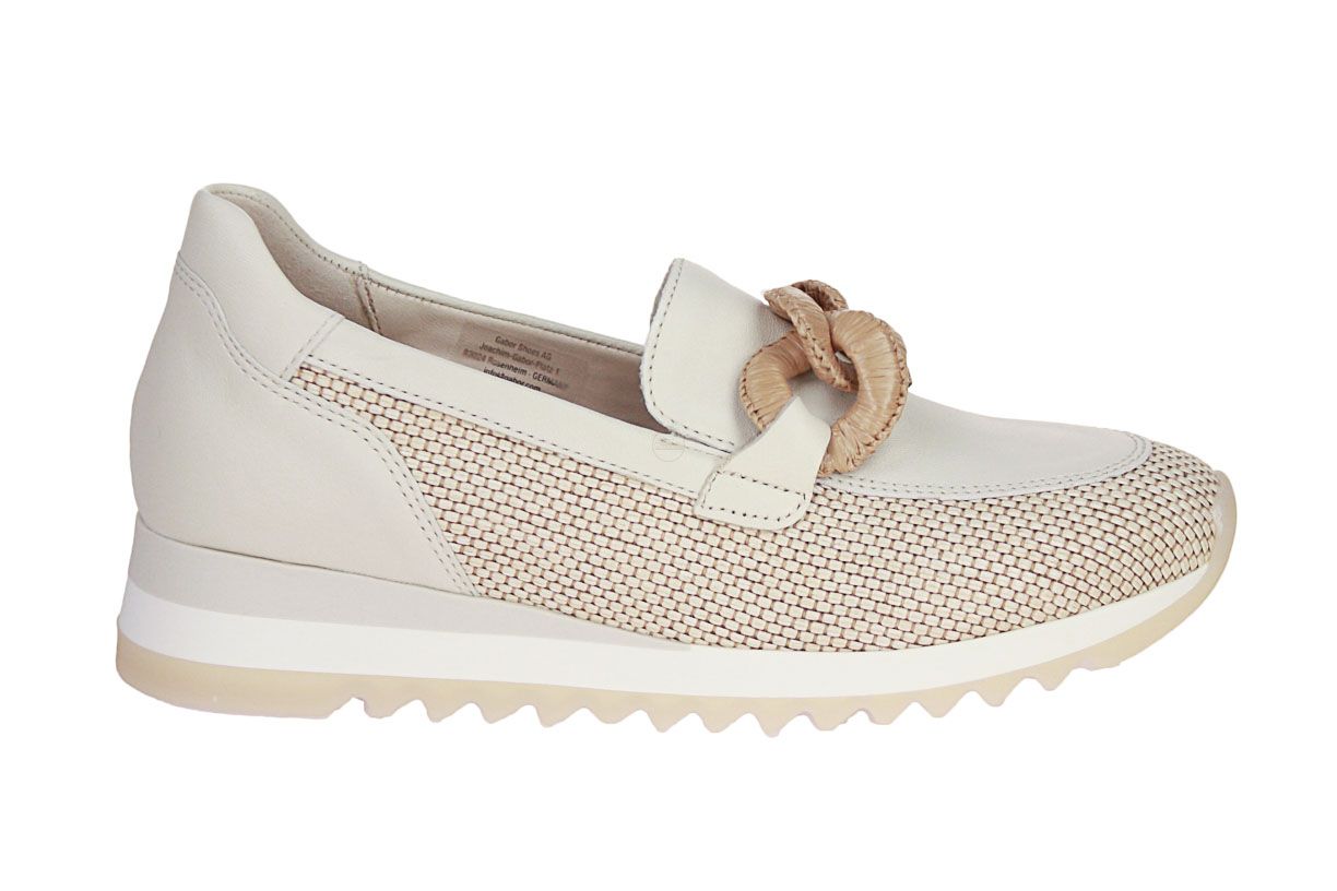Deze beige lederen damesschoen is van het merk Gabor. De binnenzool is uitneembaar, ideaal voor steunzolen.