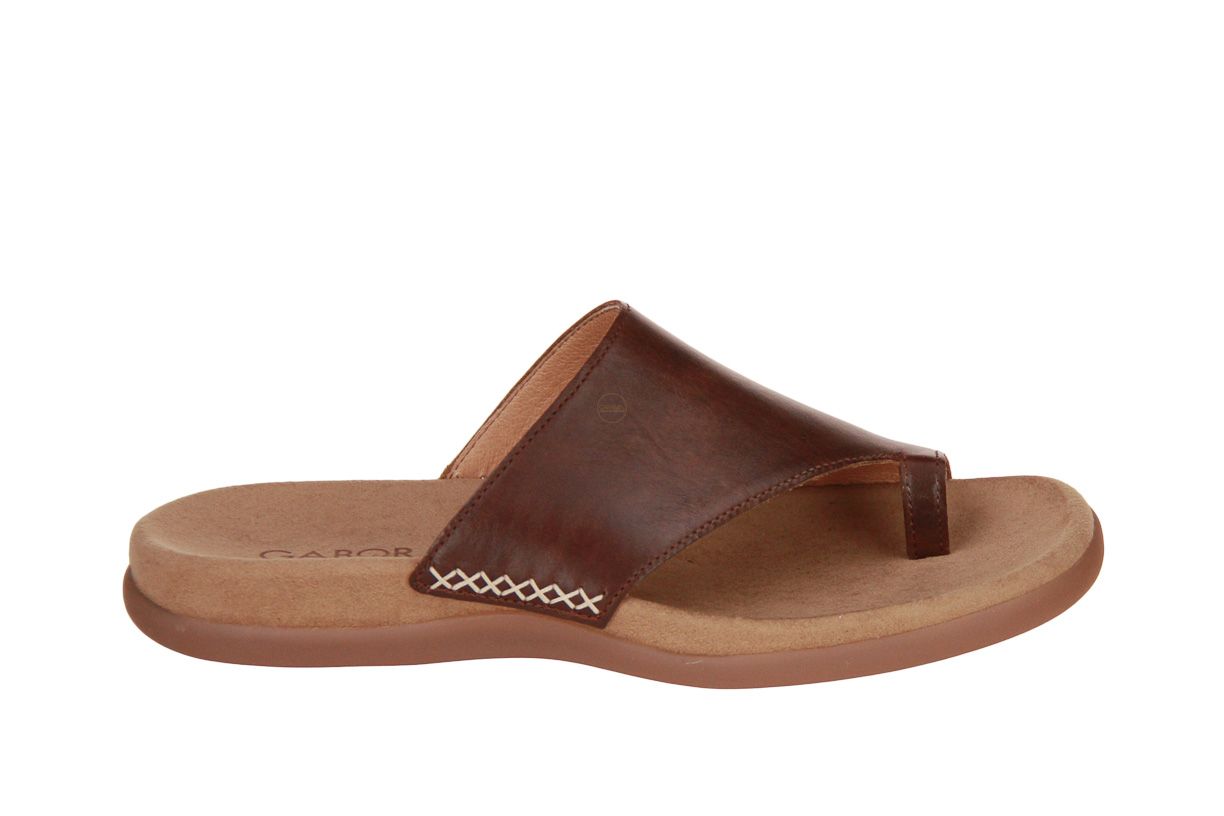 Deze cognac lederen damesslipper is van het merk Gabor.