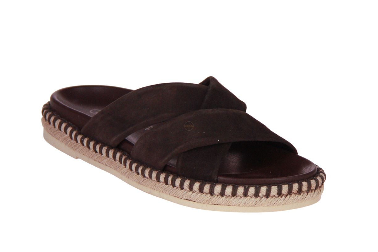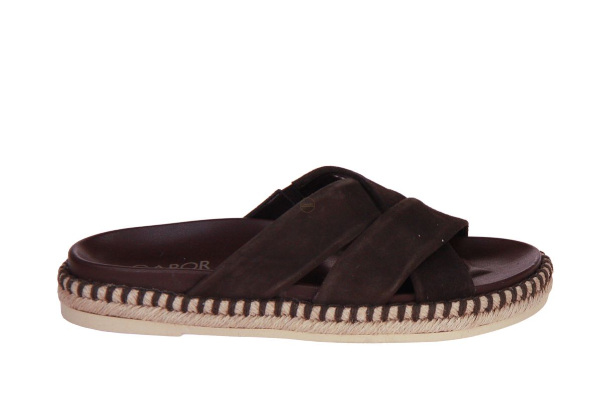 Deze bruin nubuck damesslipper is van het merk Gabor.
