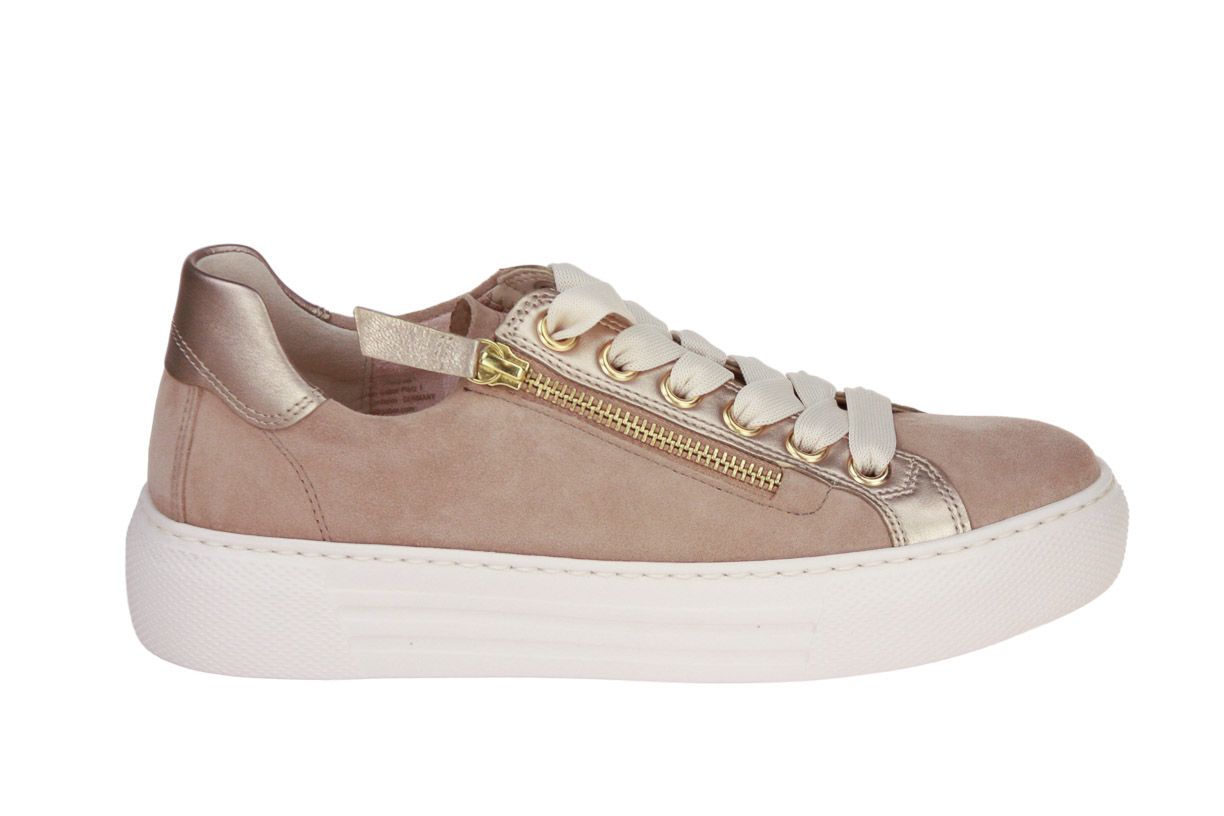 Deze beige suède damesschoen is van het merk Gabor. De binnenzool is uitneembaar, ideaal voor steunzolen.