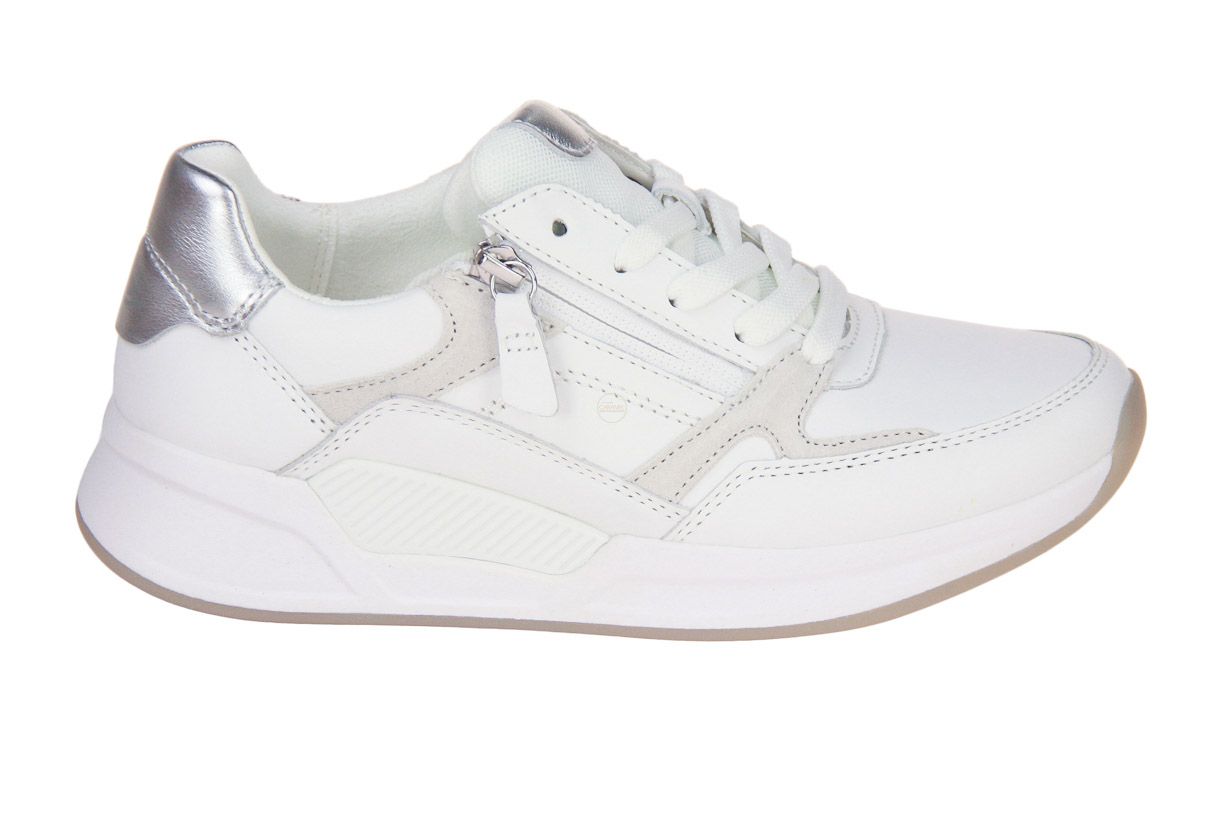 Deze wit lederen damesschoen is van het merk Gabor. De binnenzool is uitneembaar, ideaal voor steunzolen.