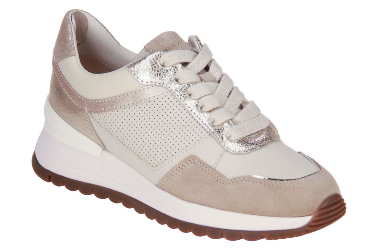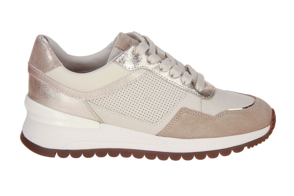 Deze beige lederen damesschoen is van het merk Geox. De binnenzool is uitneembaar ideaal voor steunzolen.