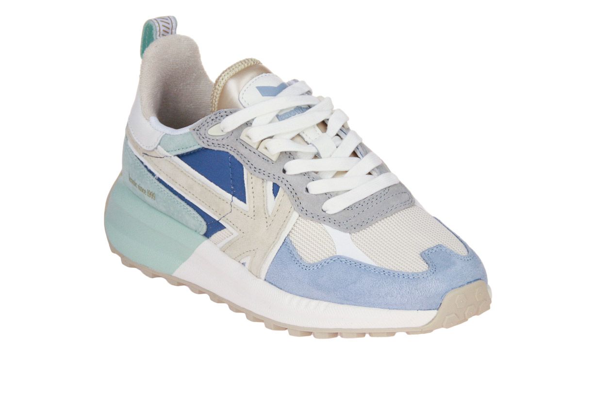 Deze licht blauw suède damesschoen is van het merk Kaotiko. De binnenzool is uitneembaar, ideaal voor steunzolen.