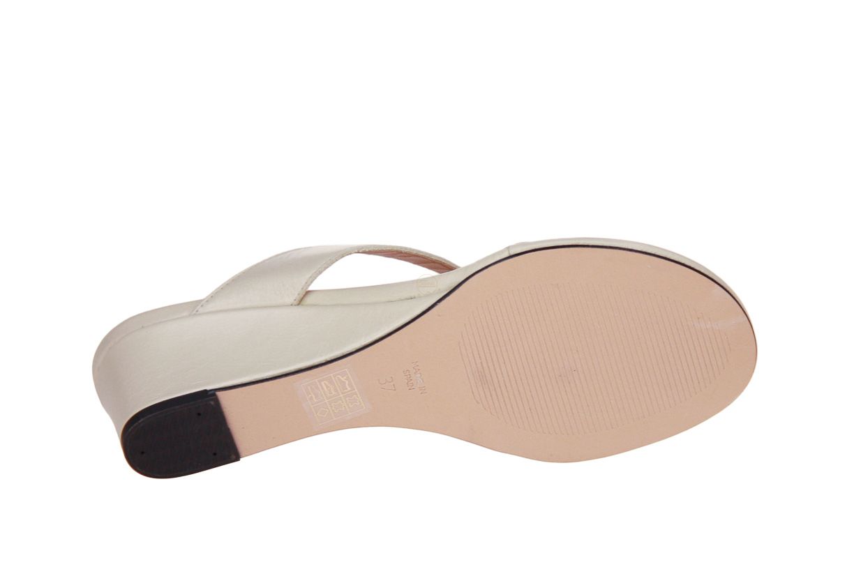 Deze beige lederen damesslipper is van het merk KMB.
