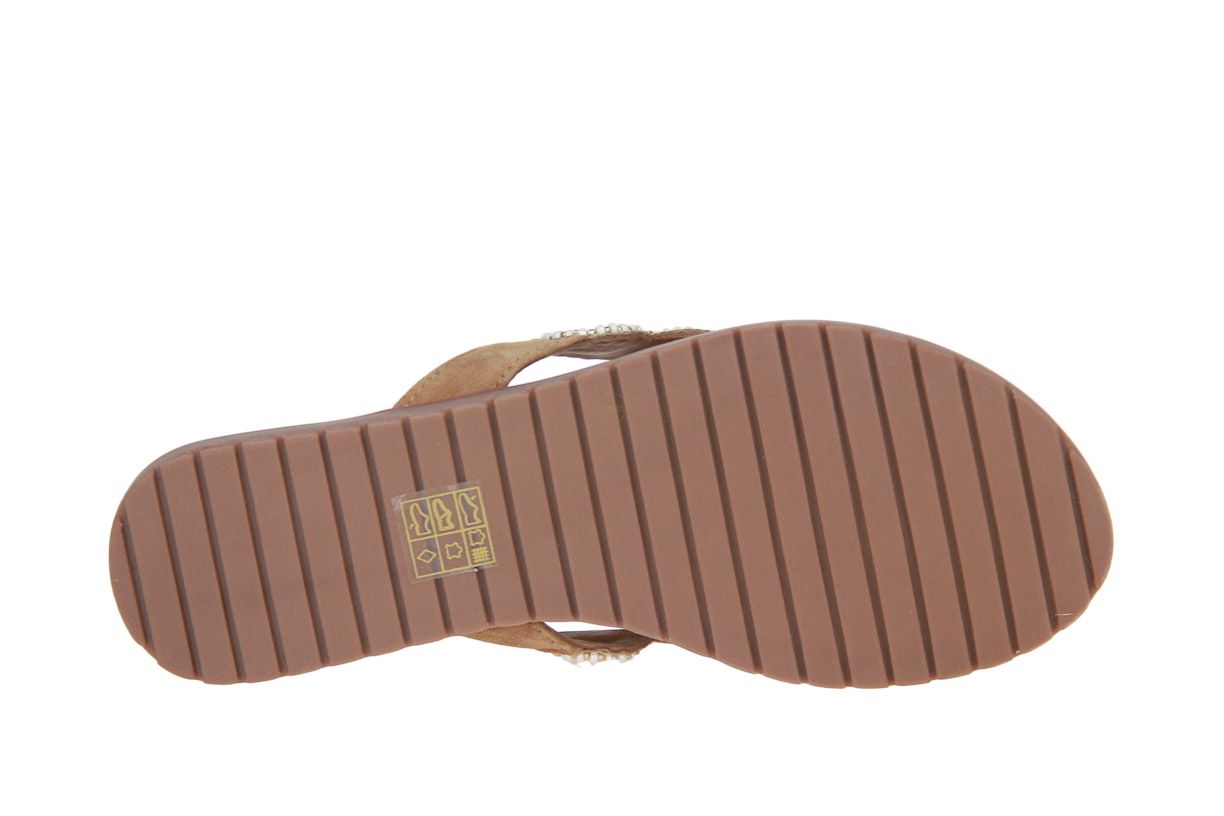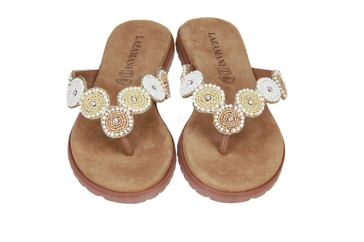 Deze beige lederen teenslipper is van het merk Lazamani.