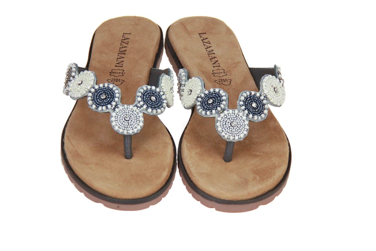 Deze grijs lederen damesslipper is van het merk Lazamani.