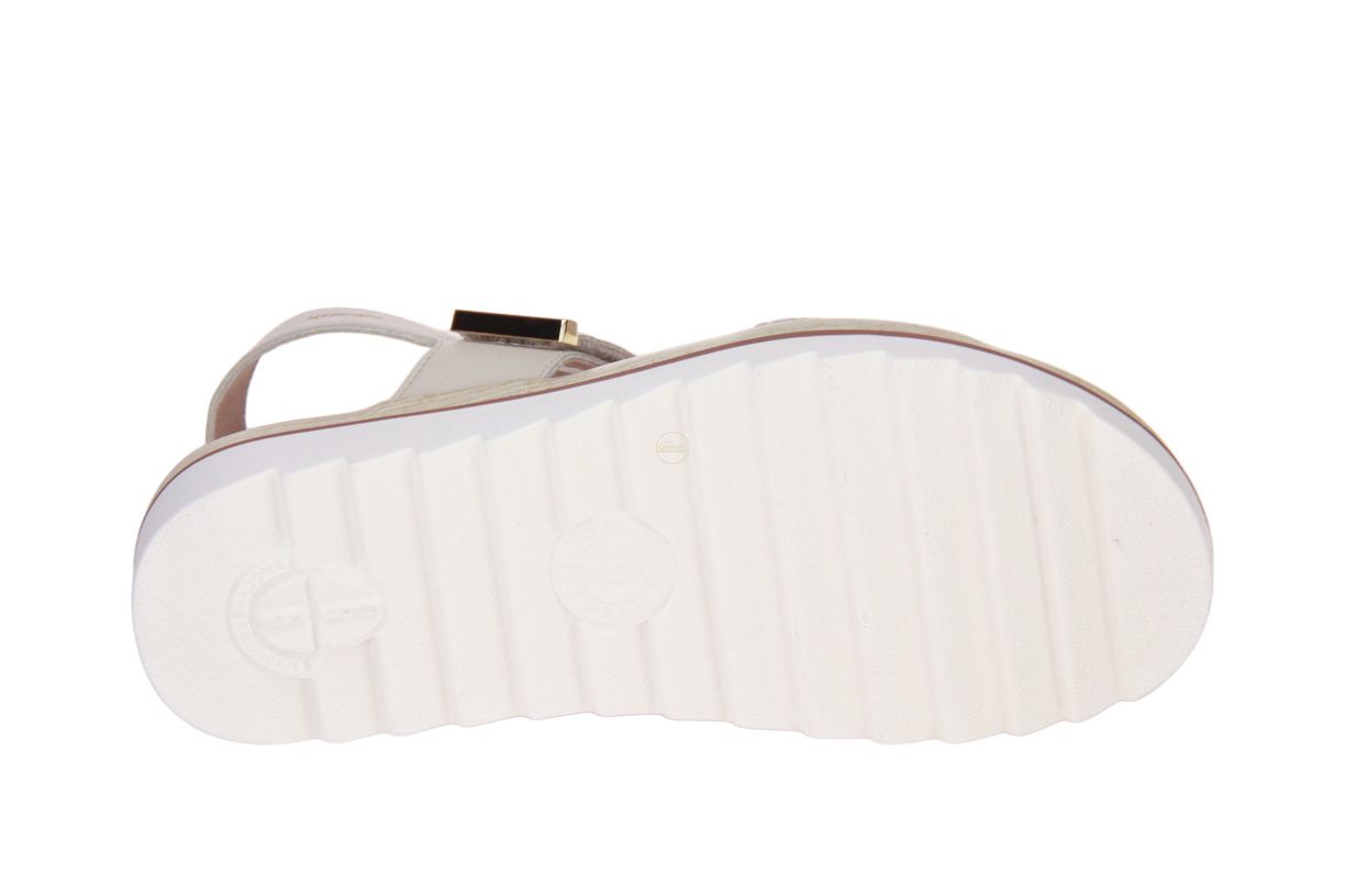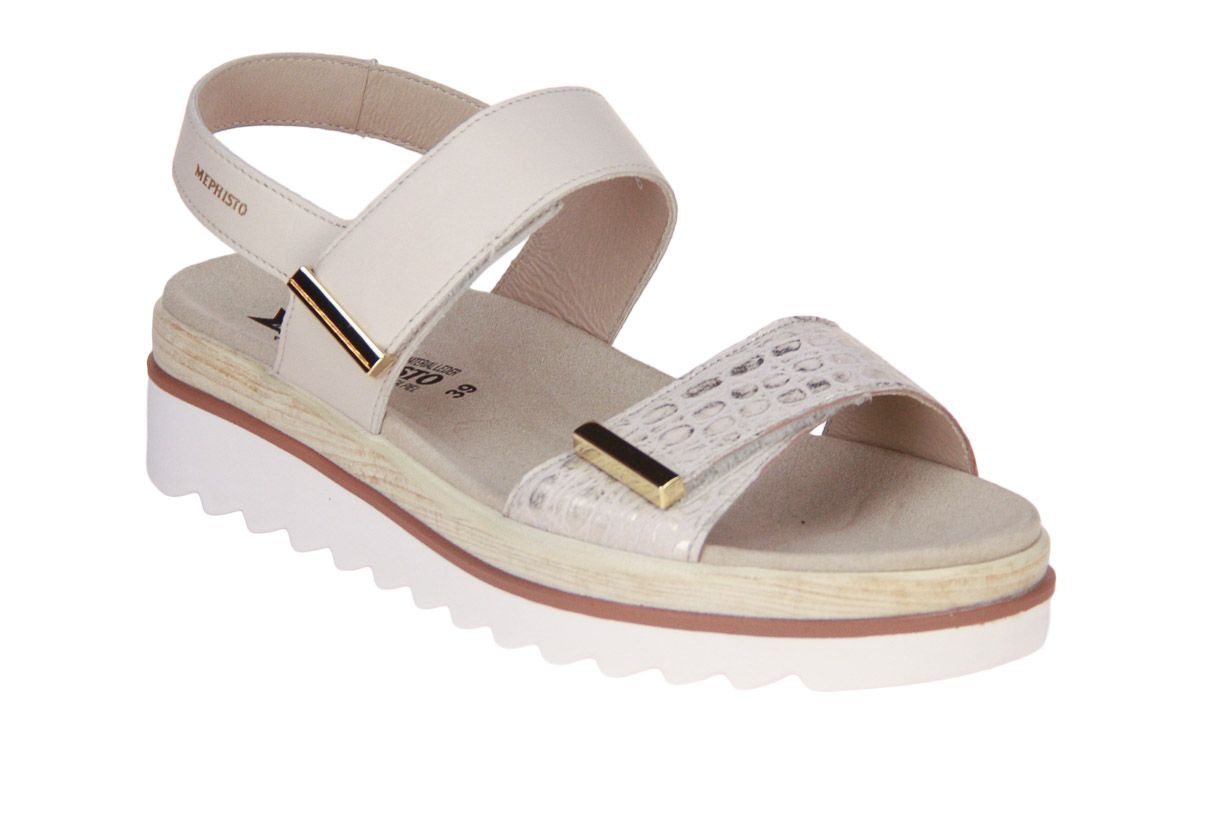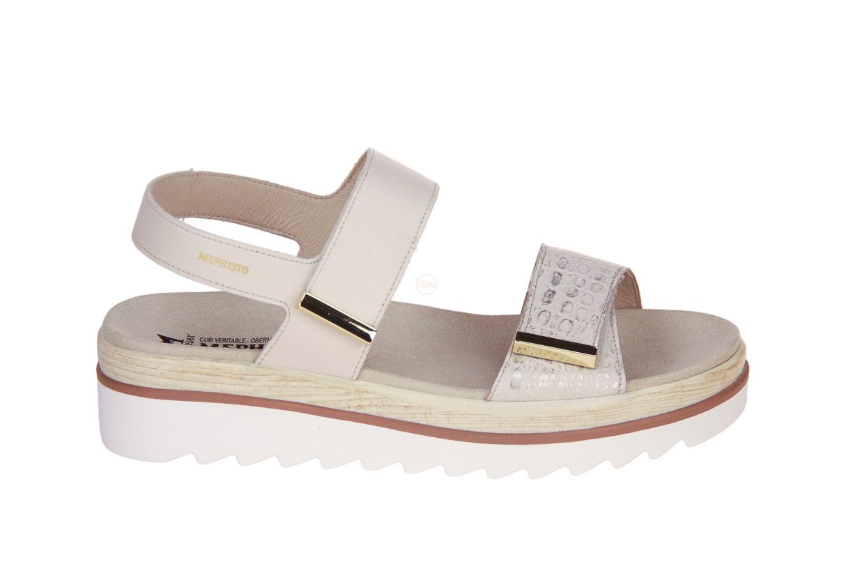 Deze beige lederen damessandaal is van het merk Mephisto.