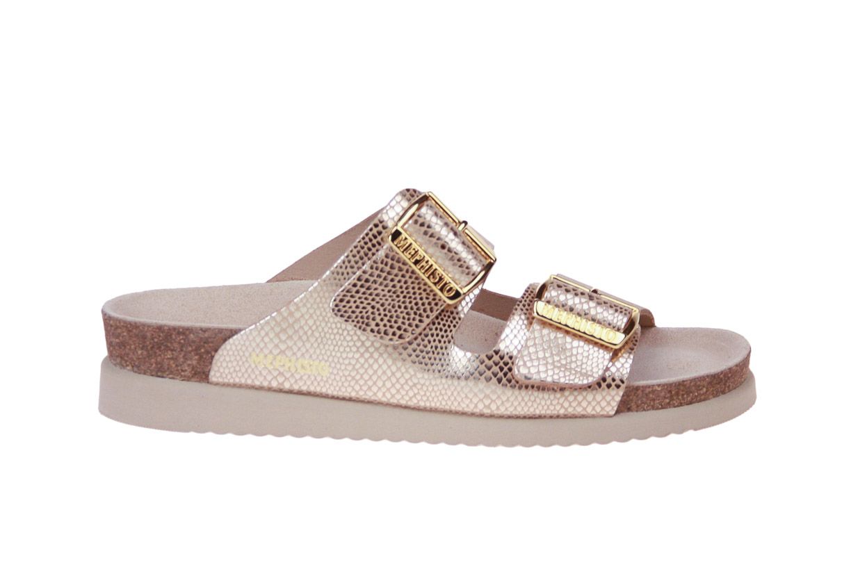 Goud/beige metallic lederen damesslipper van het merk Mephisto.