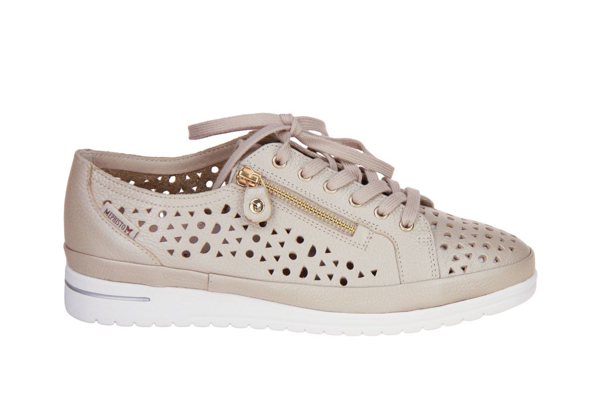 Deze beige lederen damesschoen is van het merk Mephisto.