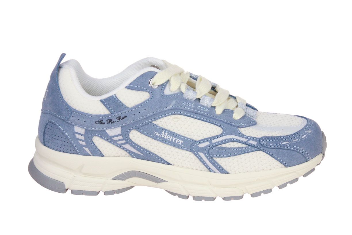 Deze blauw suède damesschoen is van het merk The Mercer Brand. De binnenzool is uitneembaar, ideaal voor steunzolen.