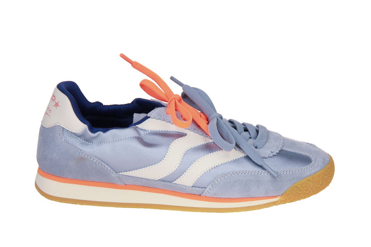 Deze blauw textielen damesschoen is van het merk MRP. De binnenzool is uitneembaar, ideaal voor steunzolen.