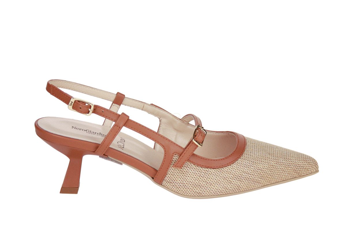 Deze cognac lederen damesschoen is van het merk Nero Giardini.