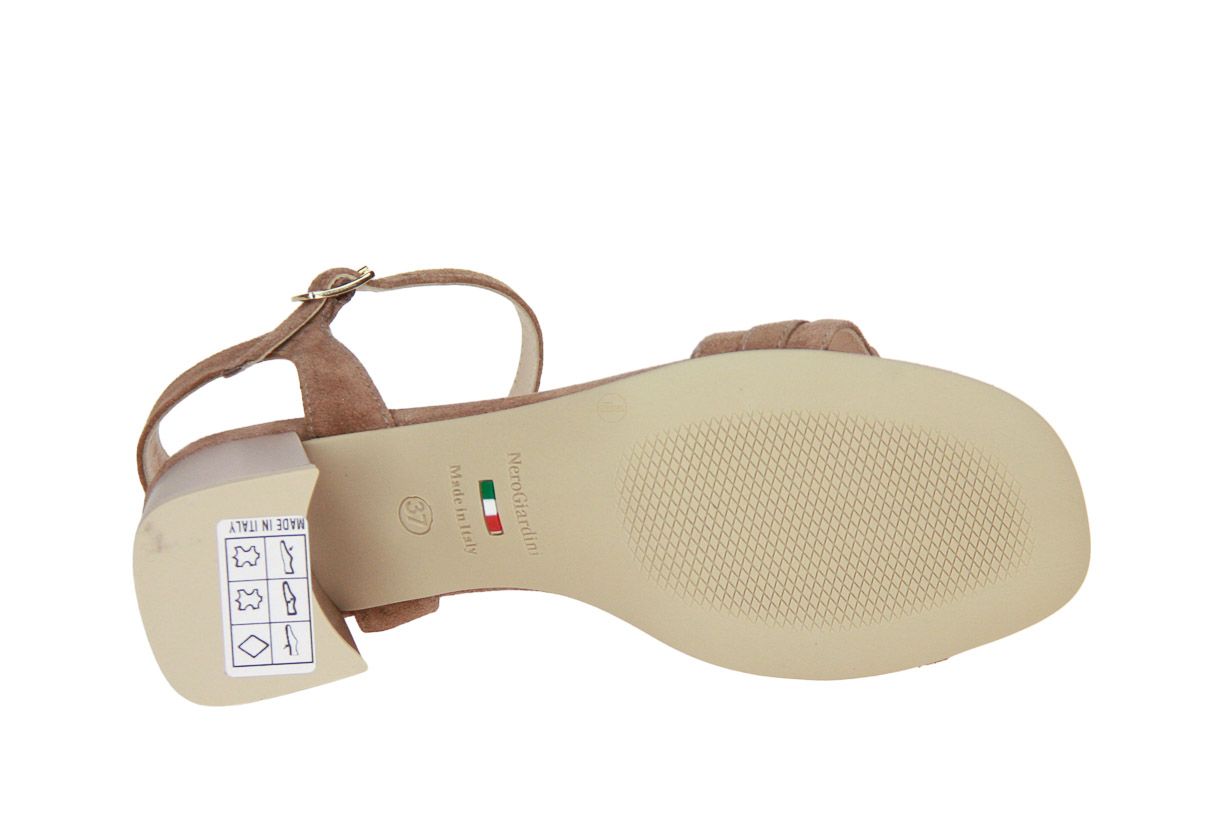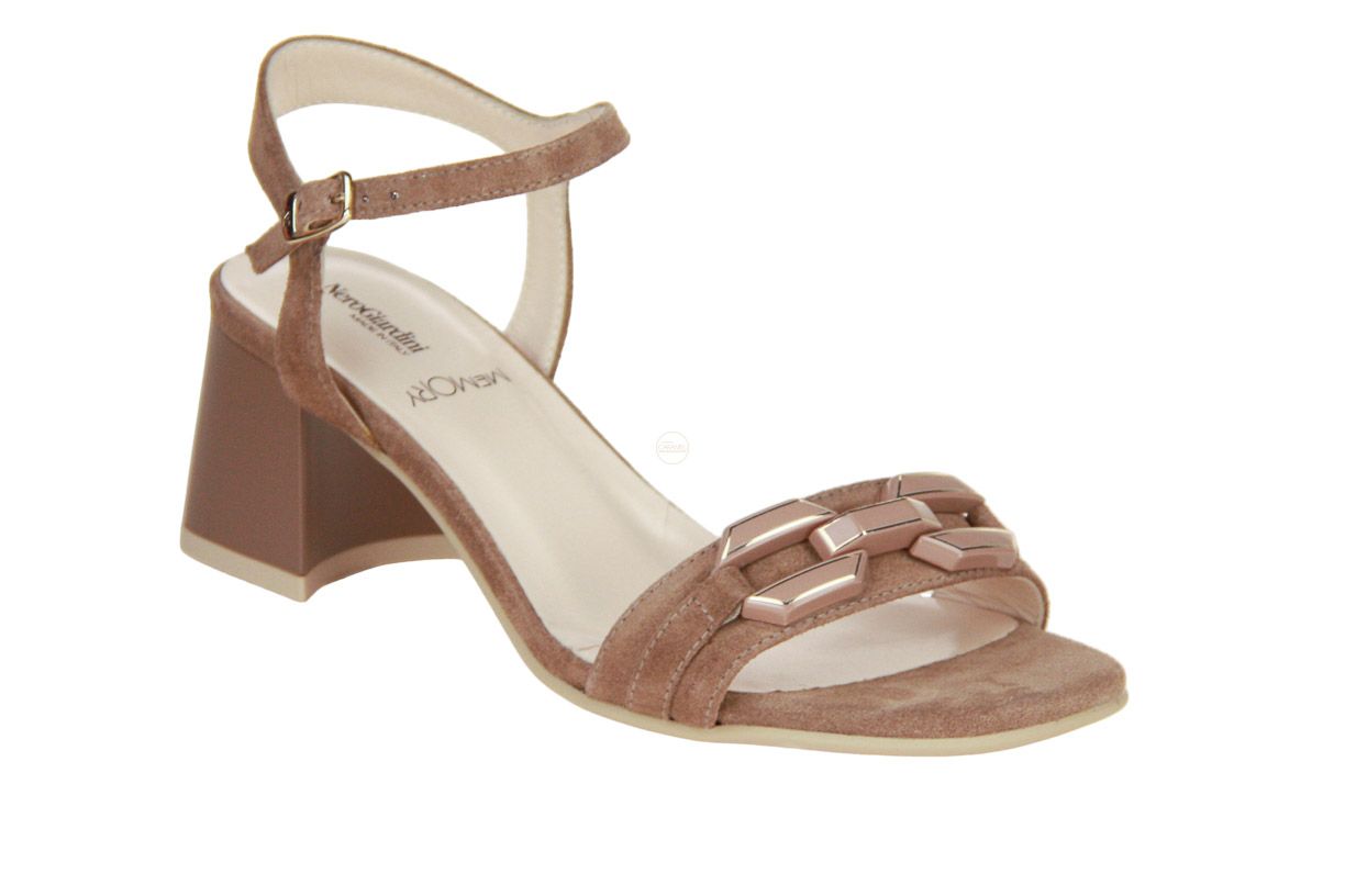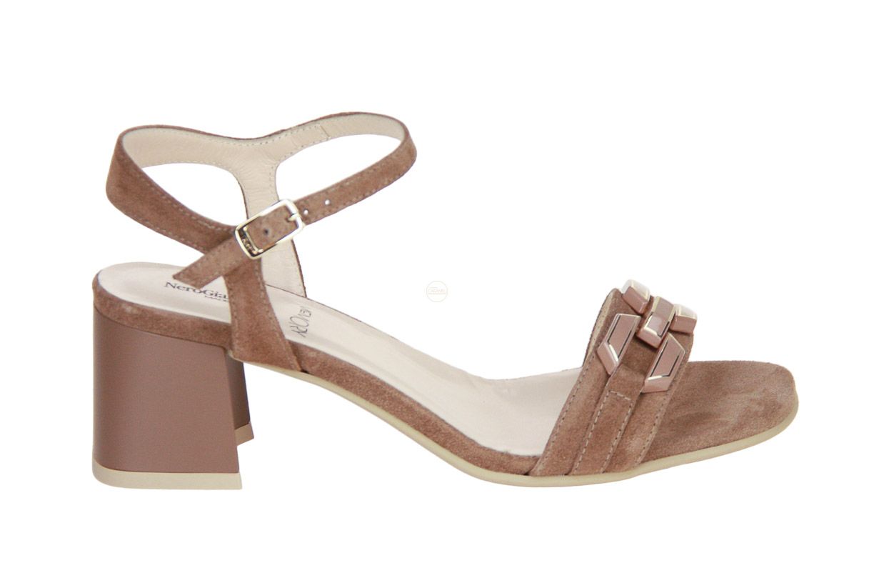 Deze cognac suède damessandaal is van het merk Nero Giardini.