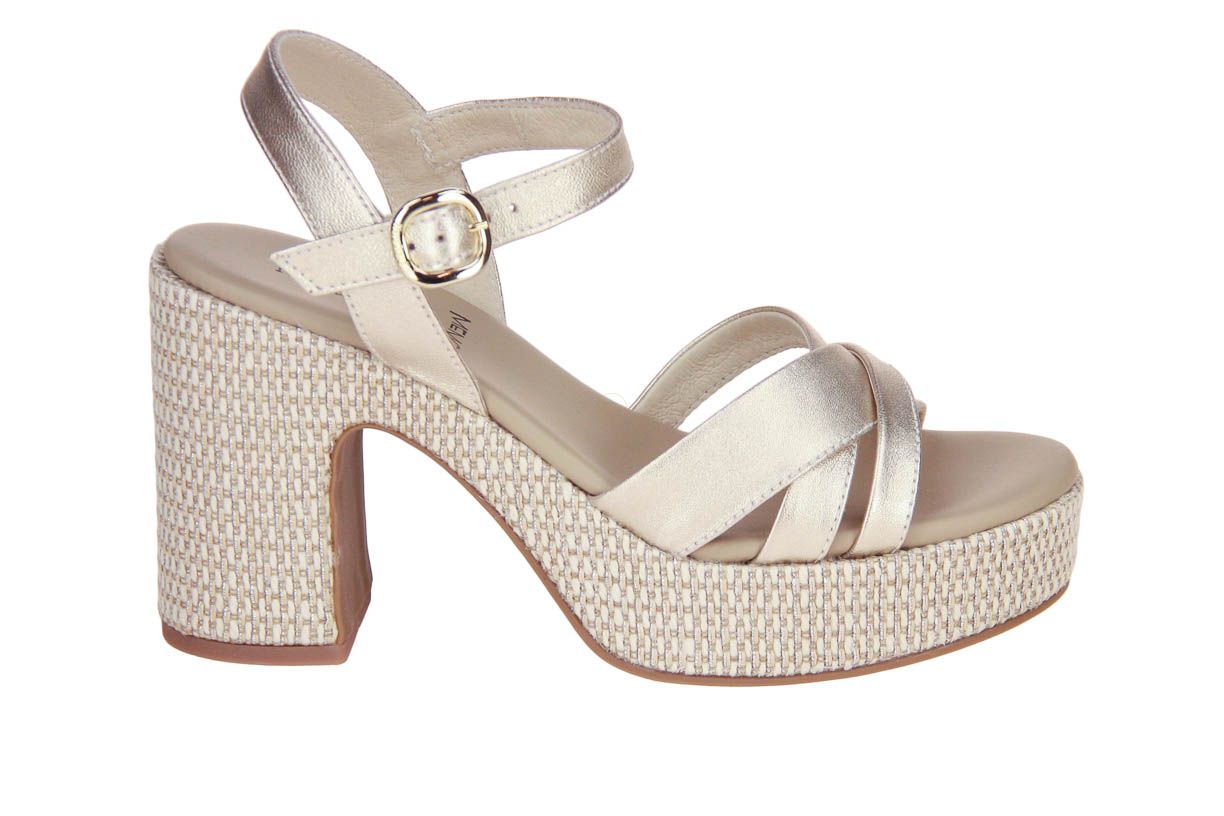 Deze goud lederen damessandaal is van het merk Nero Giardini.
