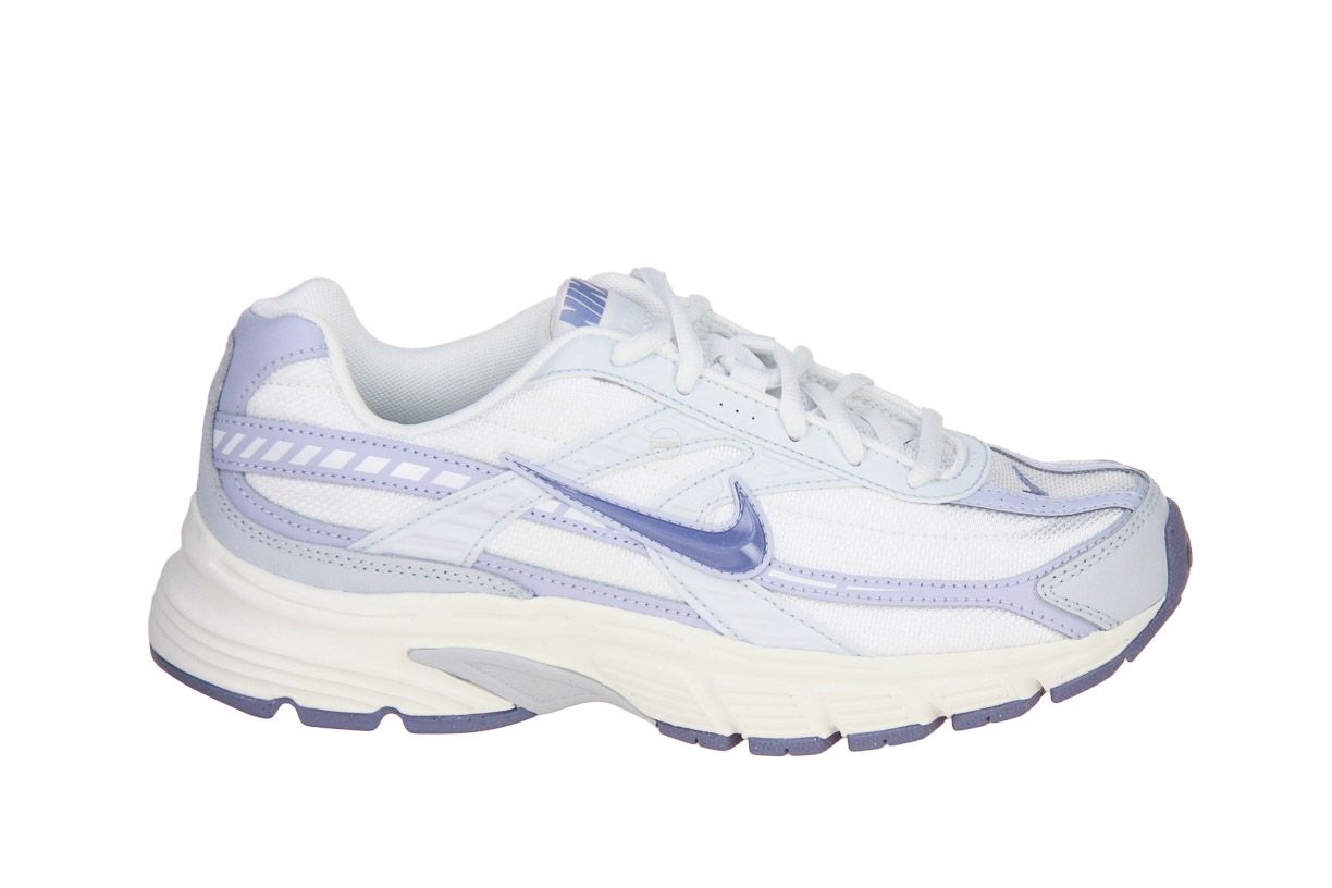 Deze wit textielen sneaker met blauwe accenten is van het merk Nike.