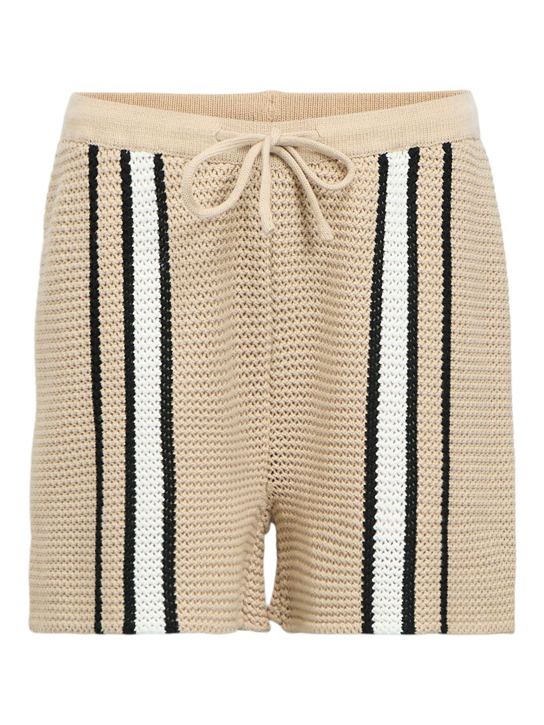 Object Viola MW Short Knit Shorts Humus/Black/Cloud Dancer  (23048722 Humus Black/Cloud Dancer) - Caramel (Sint-Job-in-’t-Goor)