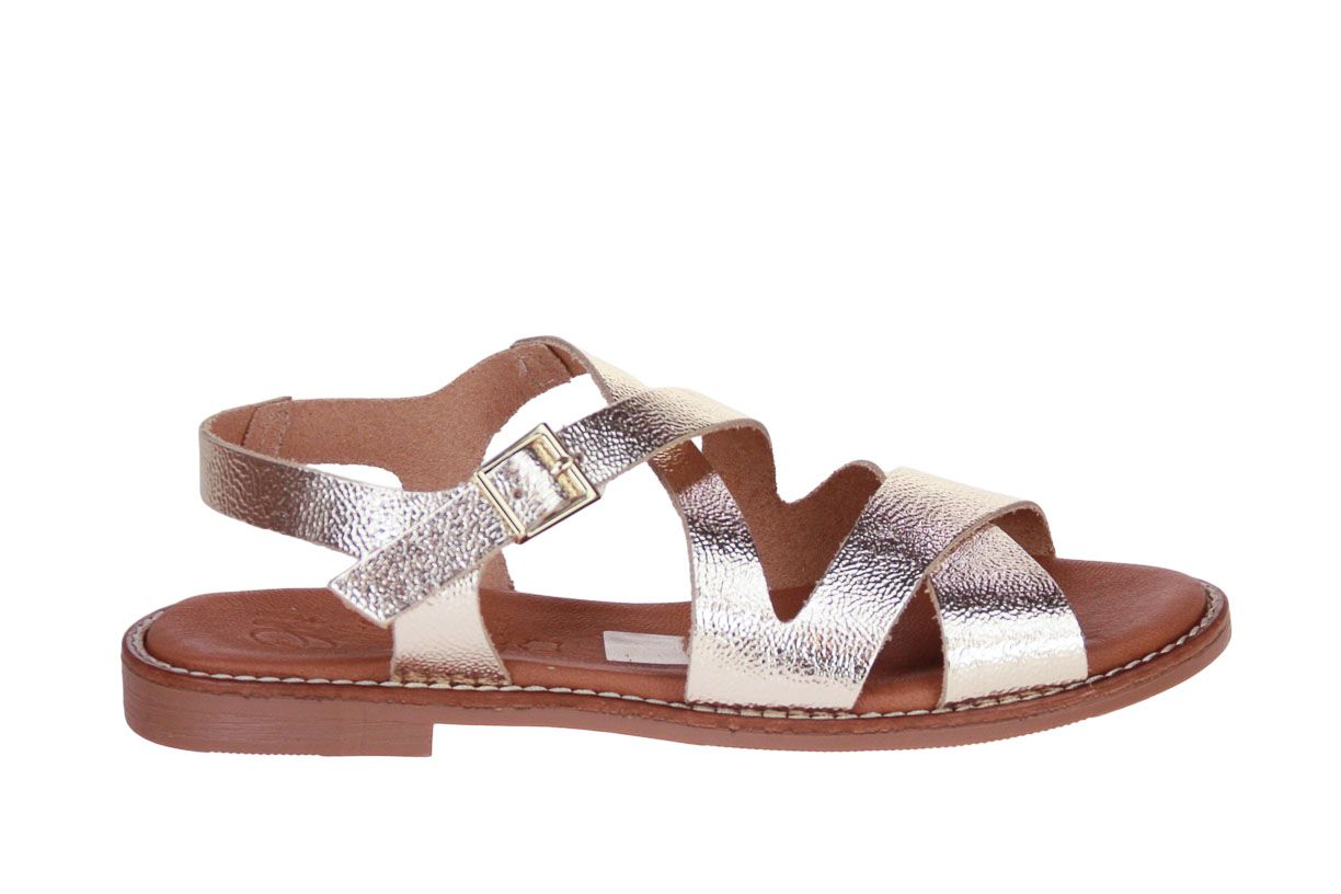 Deze goud lederen damessandaal is van het merk Oh My Sandals.