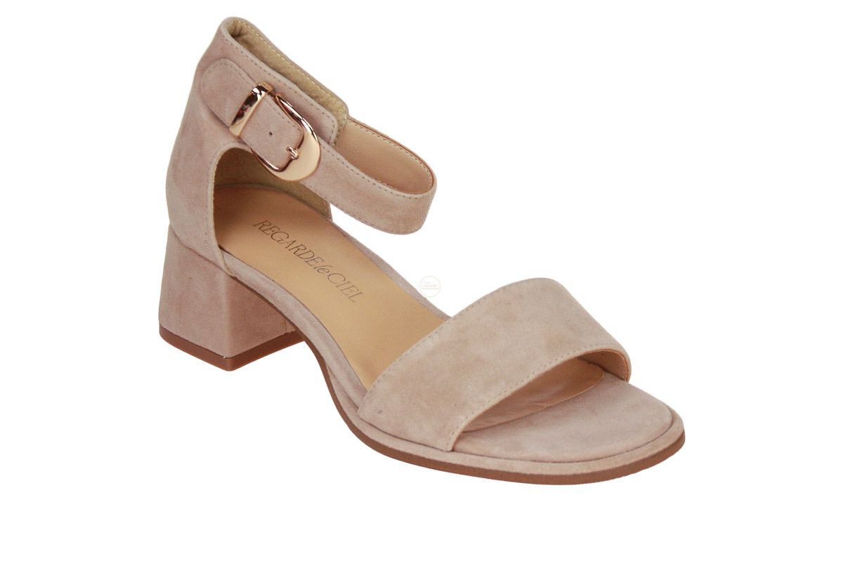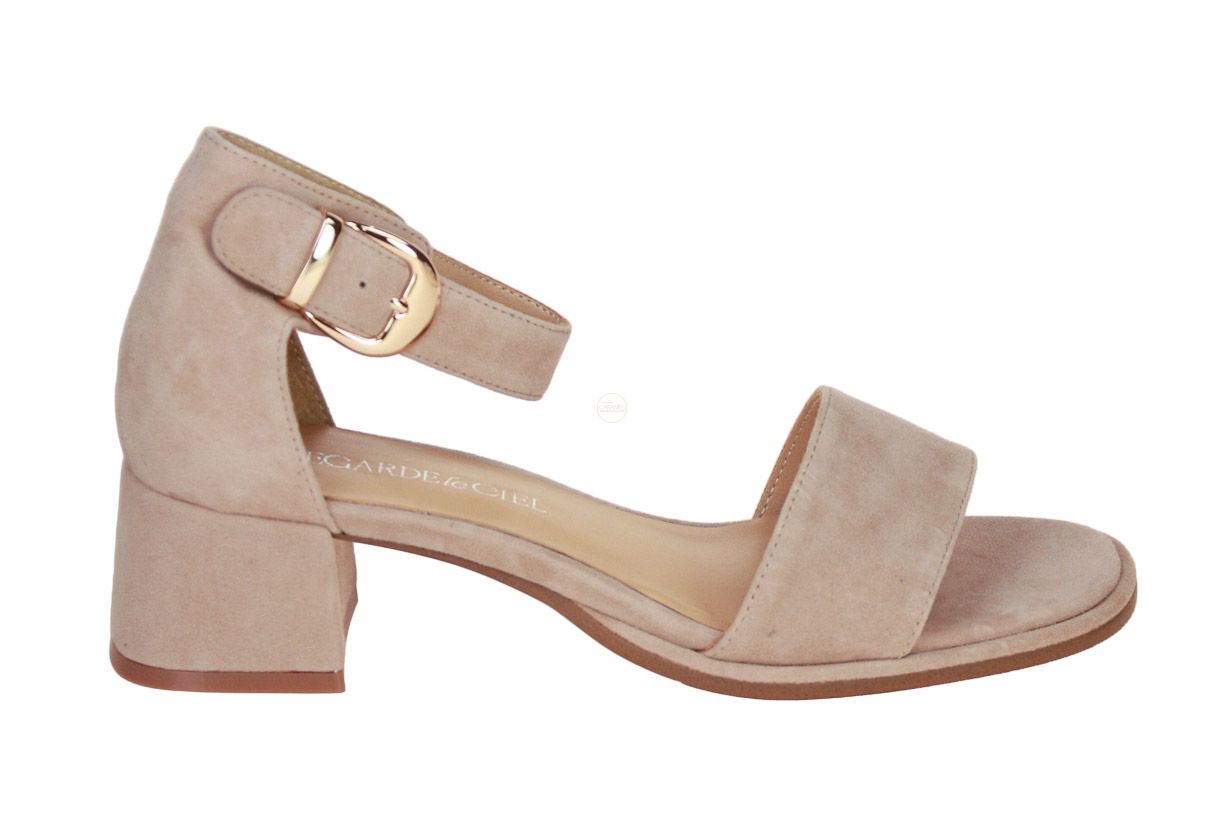 Deze beige suède damessandaal is van het merk Regarde Le Ciel.