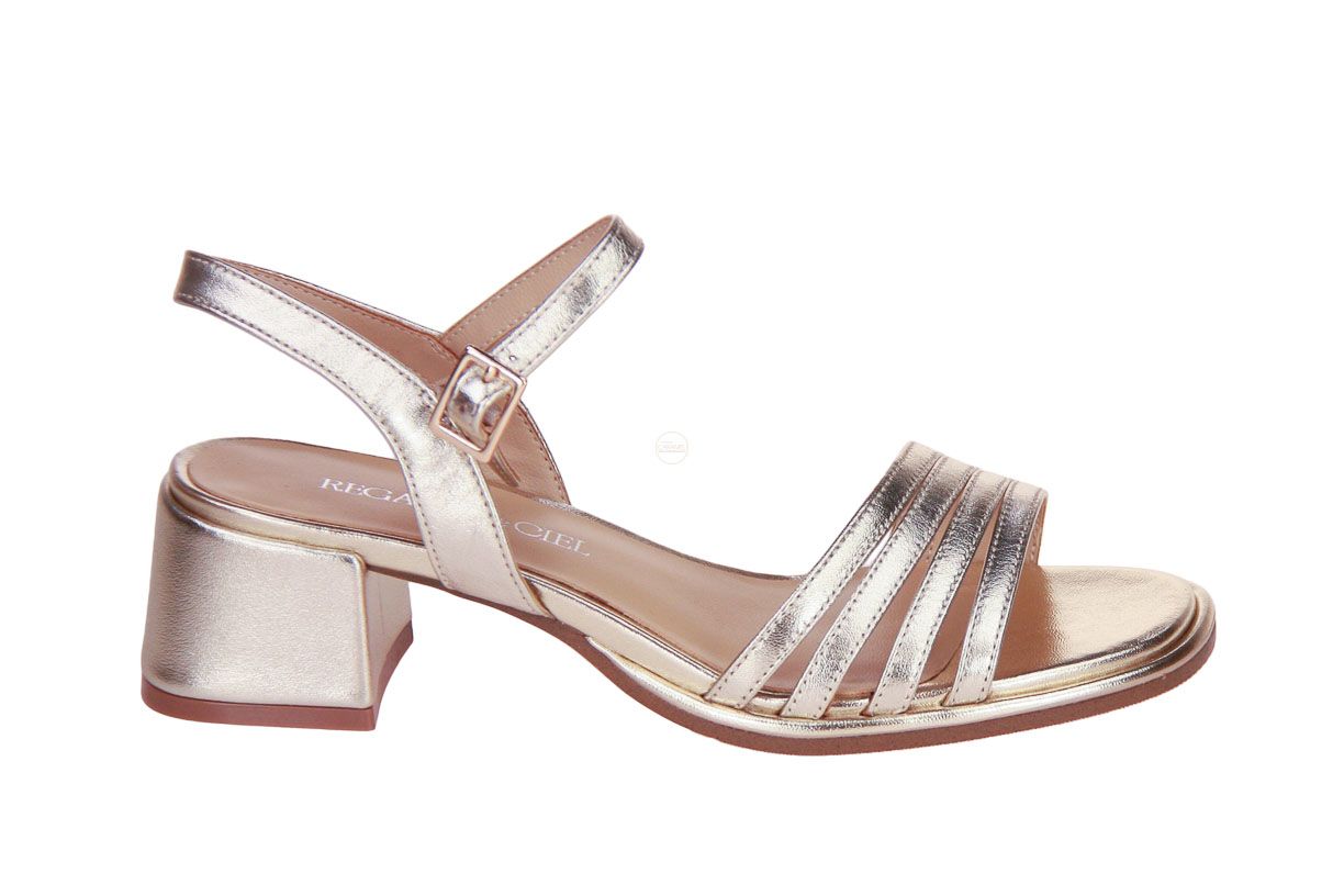 Deze goud lederen damessandaal is van het merk Rergarde Le Ciel.