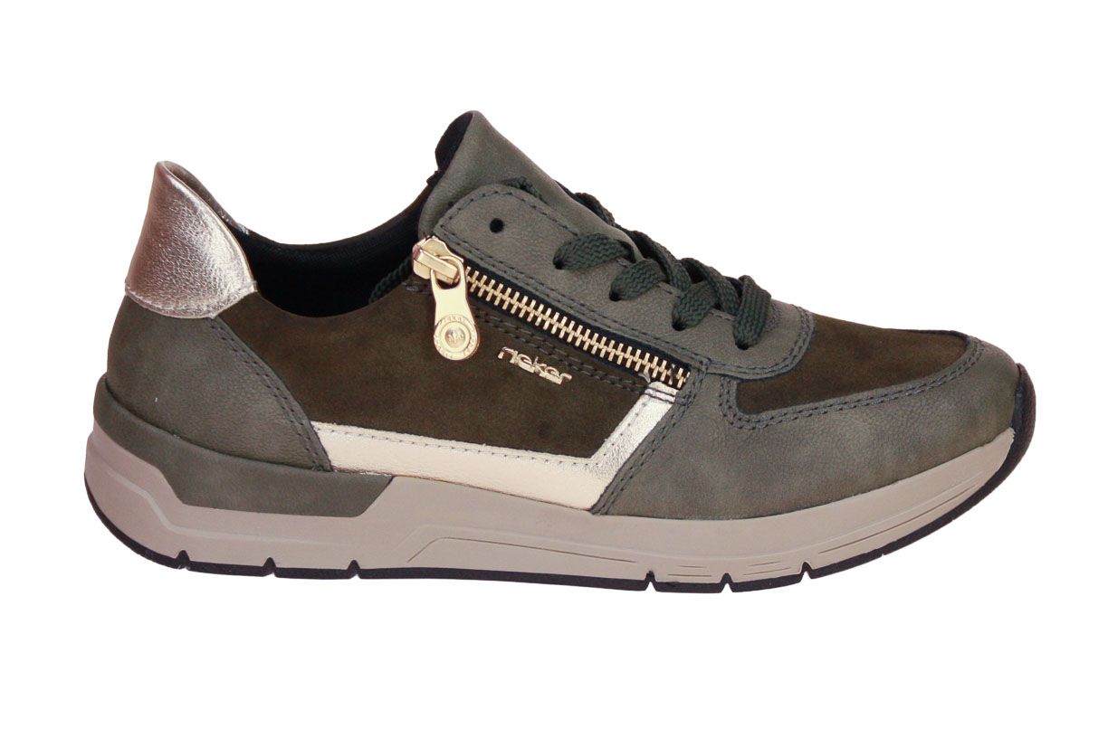 Deze groen suède damesschoen is van het merk Rieker. De binnenzool is uitneembaar, ideaal voor steunzolen.