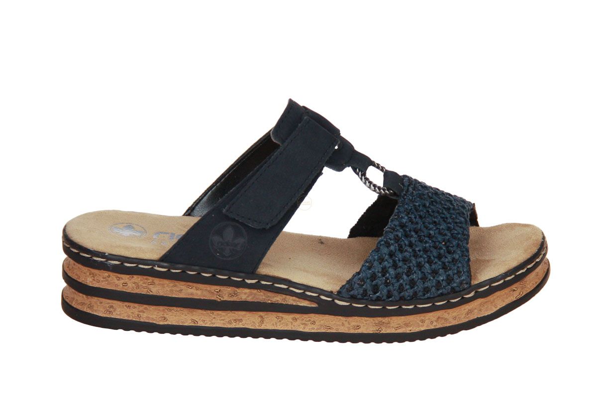 Deze blauw nubuck damesslipper is van het merk Rieker.
