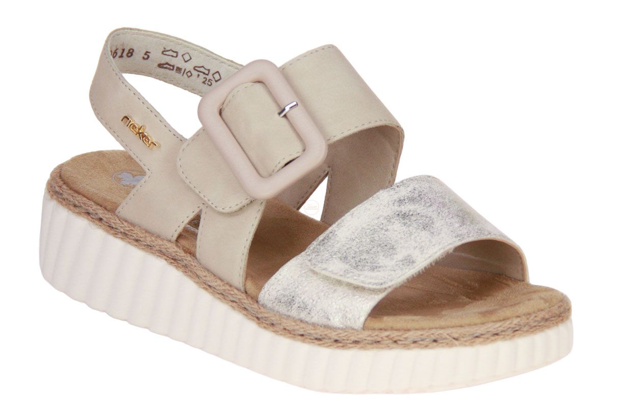 Deze nubuck damessandaal is van het merk Rieker. Dit model is extra breed.