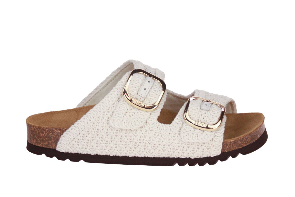 Deze offwhite textielen damesslipper is van het merk Scholl.