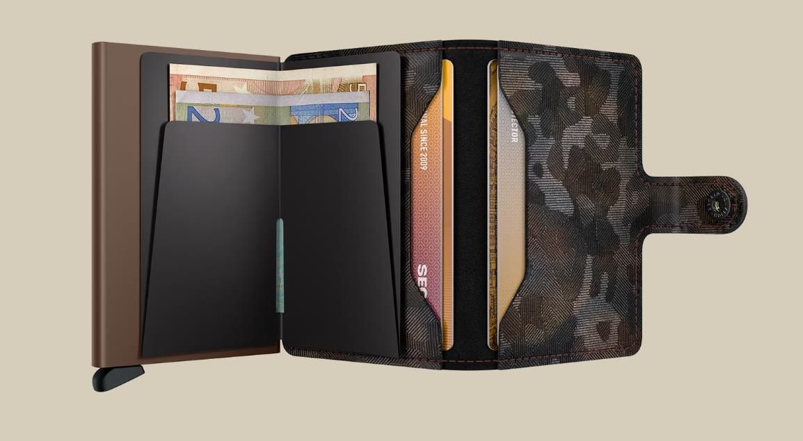Klein van formaat en verrassend groot in opslagcapaciteit. De Miniwallet combineert het beste van twee werelden. De omhulsel bevat bankbiljetten, bonnetjes en kaarten, terwijl de aluminium Cardprotector het mogelijk maakt om kaarten met één simpele beweging uit te schuiven en ze te beschermen tegen buigen, breken en ongewenste draadloze communicatie (RFID-safe). Maximaal 4 plastic pasjes met reliëf of 6 platte plastic kaarten Tot 4 extra kaarten in de buitenste wikkel Bankbiljetten Visitekaartjes Bonnetjes