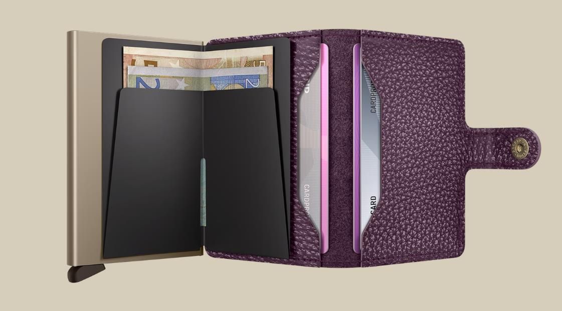 Klein van formaat en verrassend groot in opslagcapaciteit. De Miniwallet combineert het beste van twee werelden. De omhulsel bevat bankbiljetten, bonnetjes en kaarten, terwijl de aluminium Cardprotector het mogelijk maakt om kaarten met één simpele beweging uit te schuiven en ze te beschermen tegen buigen, breken en ongewenste draadloze communicatie (RFID-safe). Maximaal 4 plastic pasjes met reliëf of 6 platte plastic kaarten Tot 4 extra kaarten in de buitenste wikkel Bankbiljetten Visitekaartjes Bonnetjes