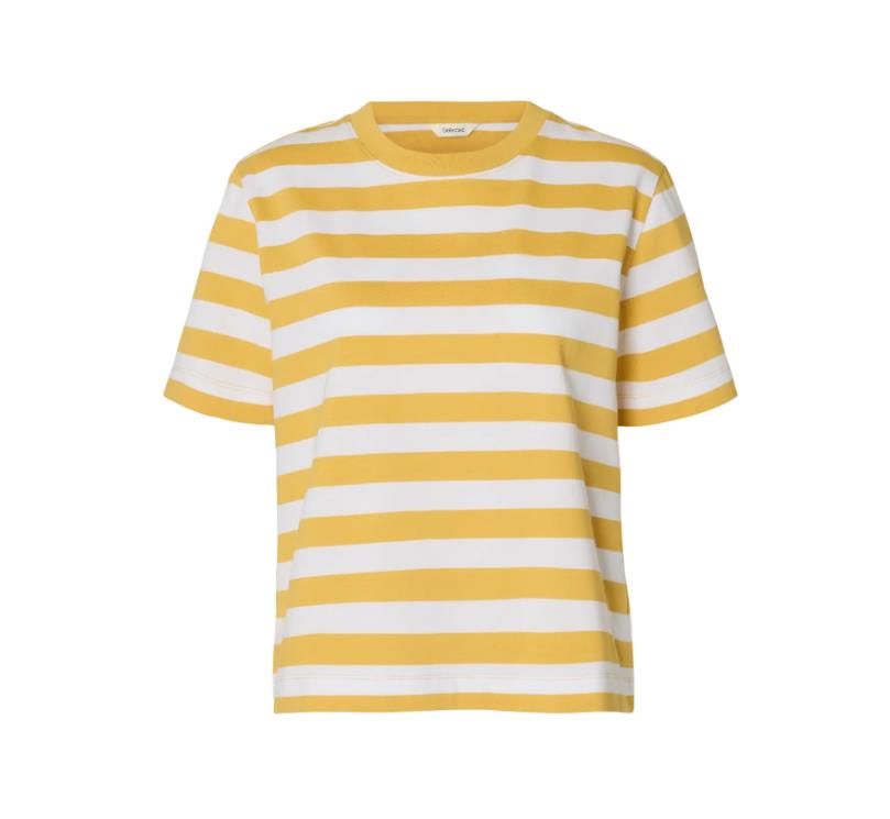 SLF Essential SS Striped Boxy Tee Ochre/Bright White  (16087918 ochrer stripes white) - Caramel (Sint-Job-in-’t-Goor) SLF Essential SS Striped Boxy Tee Ochre/Bright White  (16087918 ochrer stripes white) - Caramel (Sint-Job-in-’t-Goor)