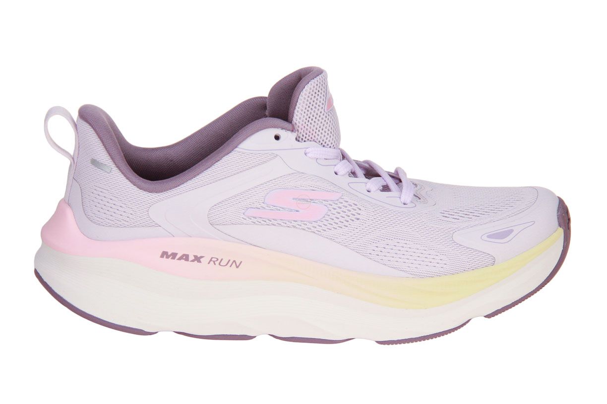 Deze lila textielen damesschoen is van het merk Skechers. Deze schoen is wasmachine bestendig.