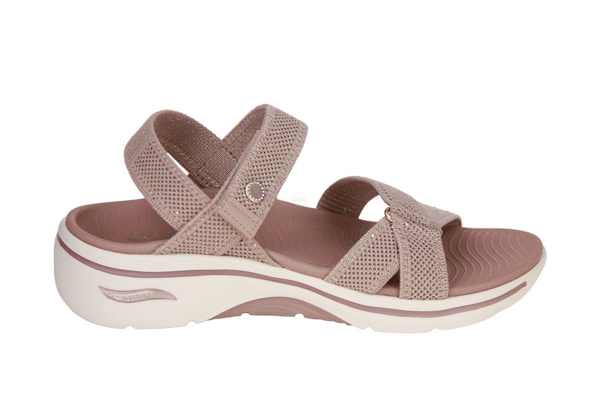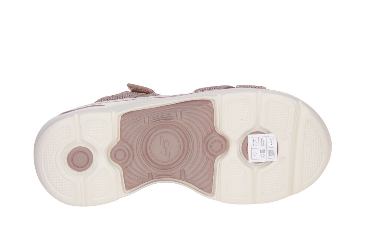 Deze textielen damessandaal is van het merk Skechers.